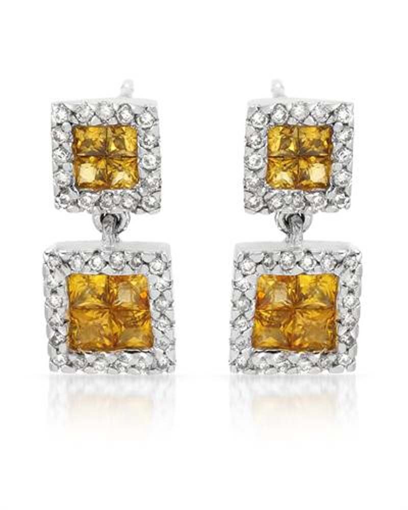 One 14KT White Gold 1.05ctw Yellow Sapphire and Diamond Earrings. (16) Yellow Sapphires with a total weight of 1.05cts. (72) Diamonds with a total weight of 0.36cts. Total weight of these earrings are 3.94 grams.