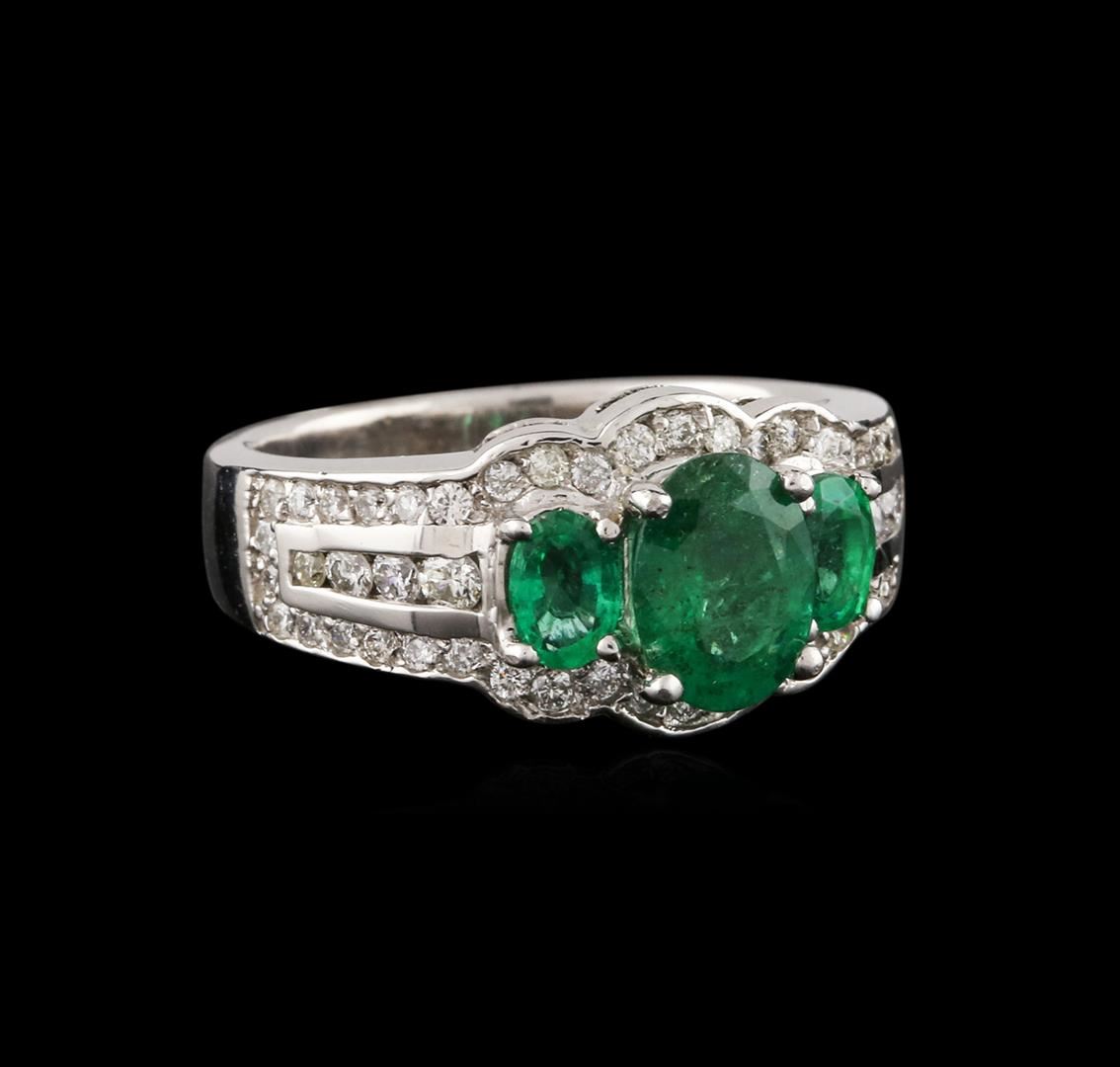 One ring featuring: 14KT white gold weighing 8.40 grams containing three emeralds with a total weight of 1.06ct and diamonds with a total weight of 0.77ct.