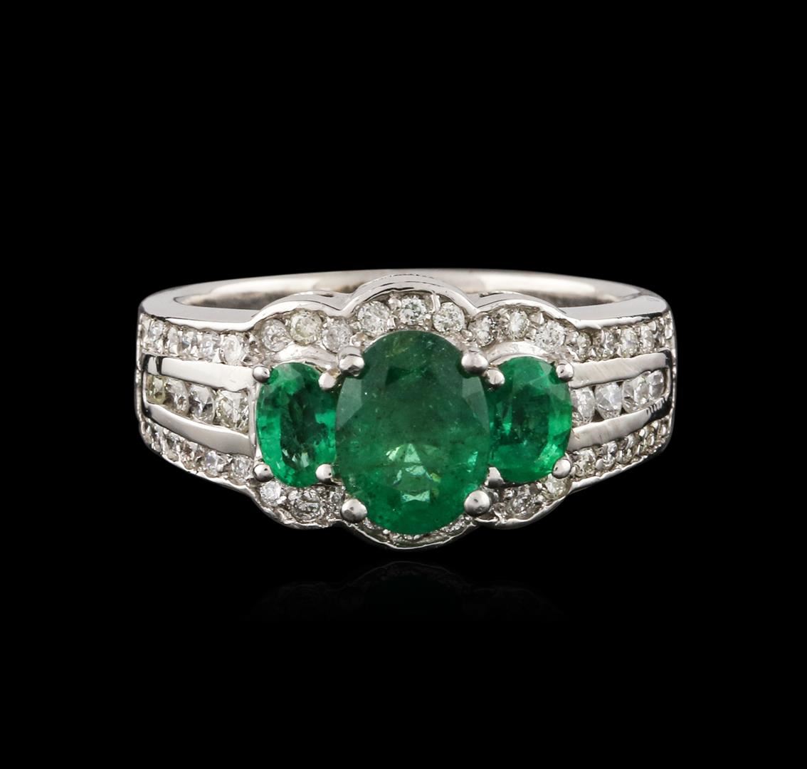 One ring featuring: 14KT white gold weighing 8.40 grams containing three emeralds with a total weight of 1.06ct and diamonds with a total weight of 0.77ct.