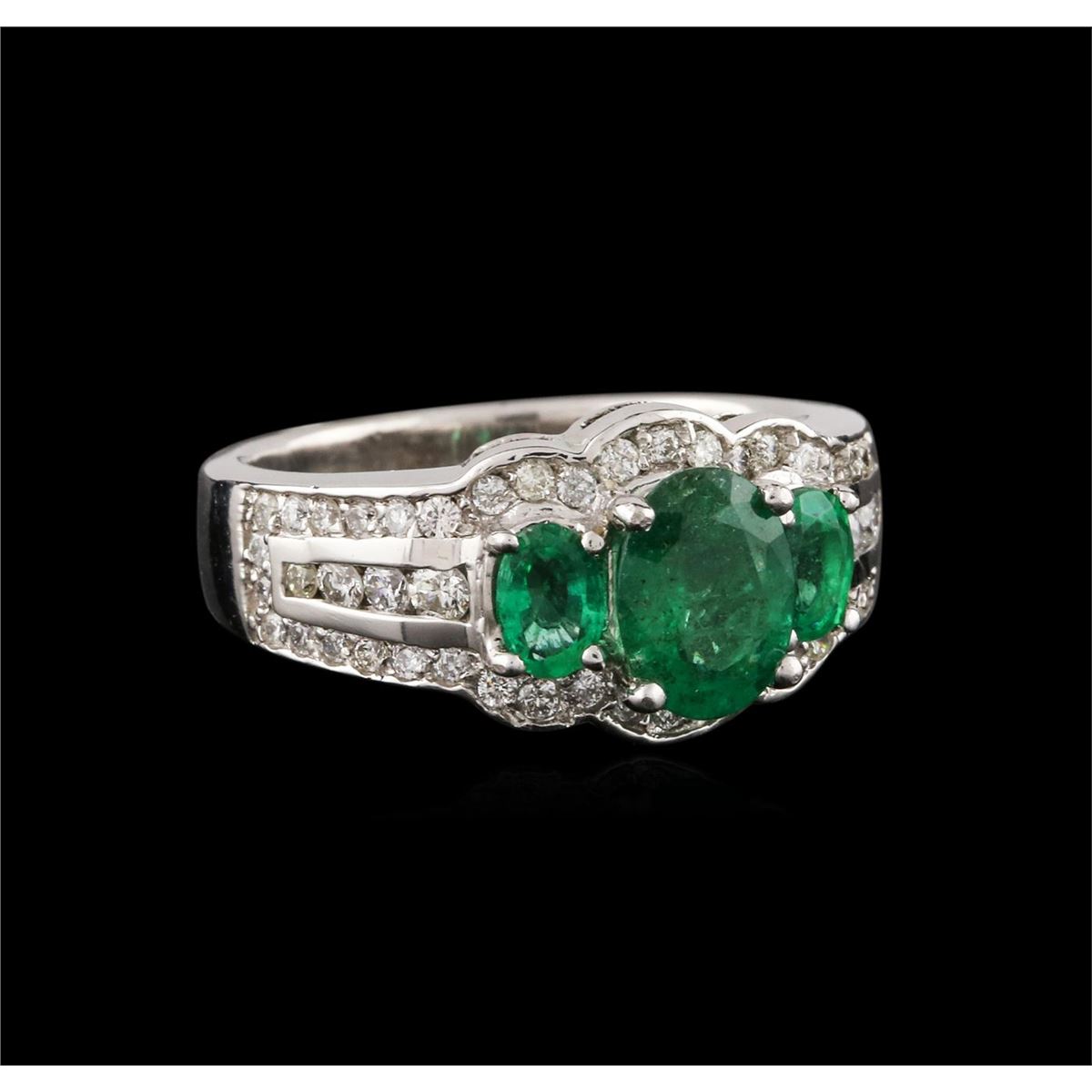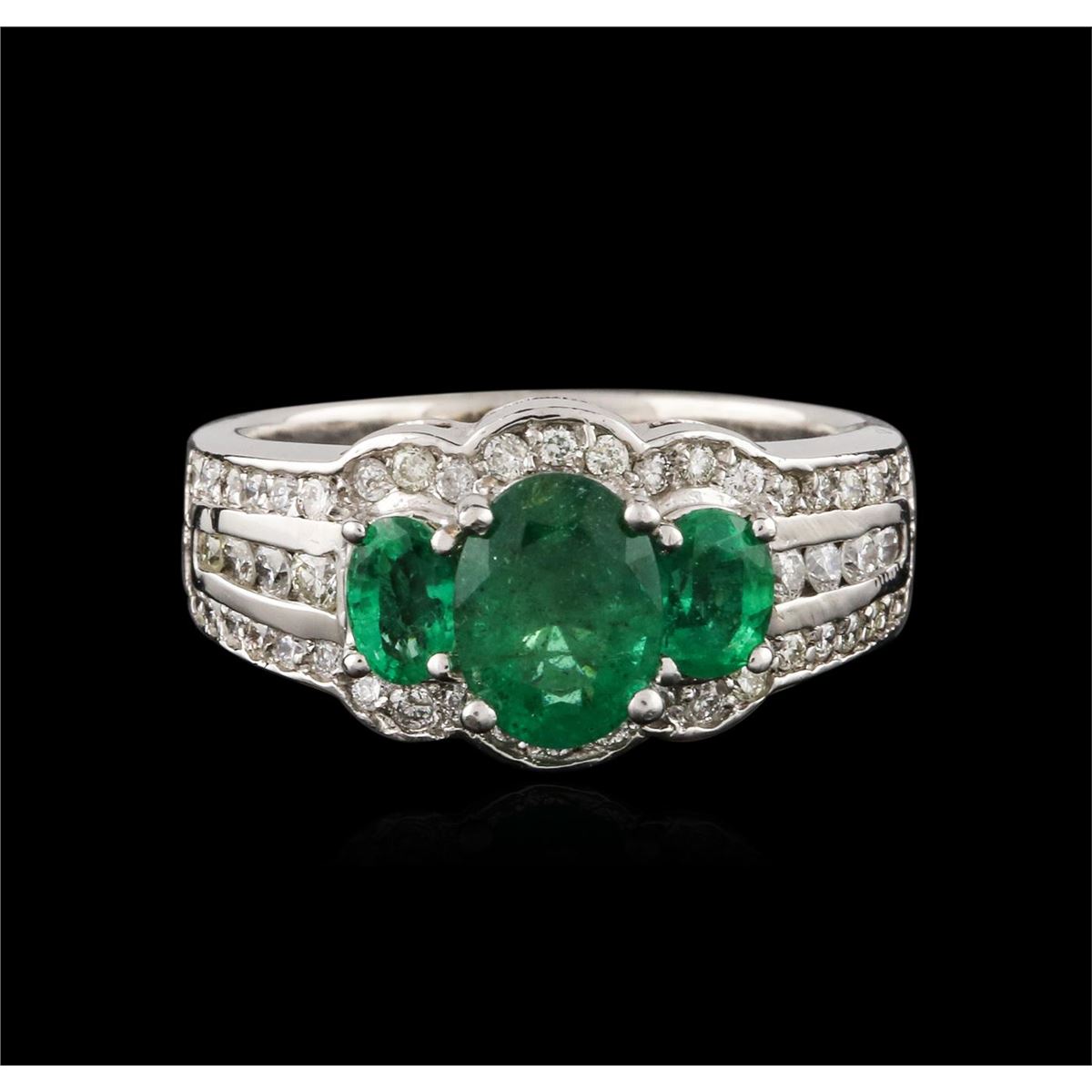 One ring featuring: 14KT white gold weighing 8.40 grams containing three emeralds with a total weight of 1.06ct and diamonds with a total weight of 0.77ct.