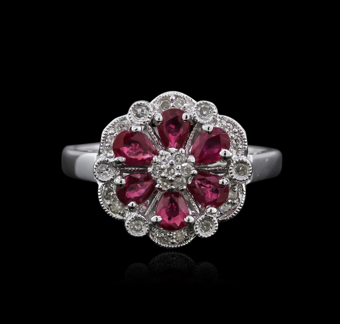 One ring featuring: 14KT white gold weighing 3.51 grams containing six rubies with a total weight of 1.06ct and 25 diamonds with a total weight of 0.17ct.