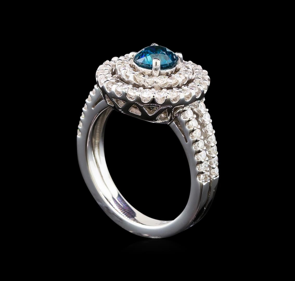 One electronically tested 14KT white gold ladies cast diamond engagement ring with a bright polish finish. Identified with markings of "14K". Condition is new. Containing: One prong set round brilliant cut diamond, measuring 5.10 - 5.10 x 3.06mm (depth est.) approximate weight of 0.49ct. Clarity: I-2, Cut is Good. The color of the stone has been treated. Seventy-Three prong set round brilliant cut diamonds, measuring 1.30 - 1.30 x 0.78mm (depth est.) approximate total weight of 73 Stones = 0.58ct. Clarity: SI-2 to I-2. Color: H - I, Cut is Good. All diamonds are graded in the mounting, unless otherwise stated. Total Weight of Diamonds 1.07ct. Total Weight of Engagement Ring 7.10 grams. GGL Appraised at $4,750.00.