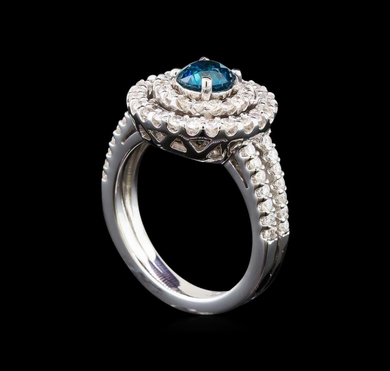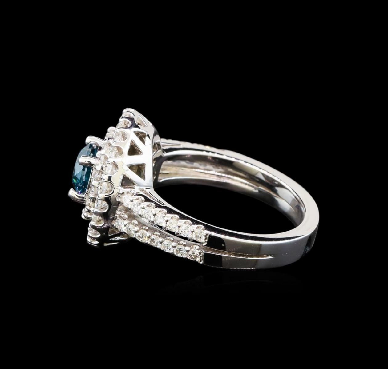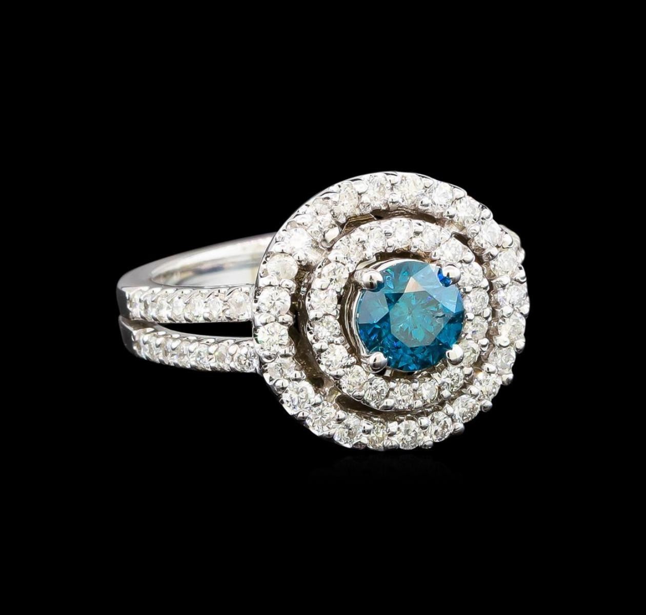 One electronically tested 14KT white gold ladies cast diamond engagement ring with a bright polish finish. Identified with markings of "14K". Condition is new. Containing: One prong set round brilliant cut diamond, measuring 5.10 - 5.10 x 3.06mm (depth est.) approximate weight of 0.49ct. Clarity: I-2, Cut is Good. The color of the stone has been treated. Seventy-Three prong set round brilliant cut diamonds, measuring 1.30 - 1.30 x 0.78mm (depth est.) approximate total weight of 73 Stones = 0.58ct. Clarity: SI-2 to I-2. Color: H - I, Cut is Good. All diamonds are graded in the mounting, unless otherwise stated. Total Weight of Diamonds 1.07ct. Total Weight of Engagement Ring 7.10 grams. GGL Appraised.