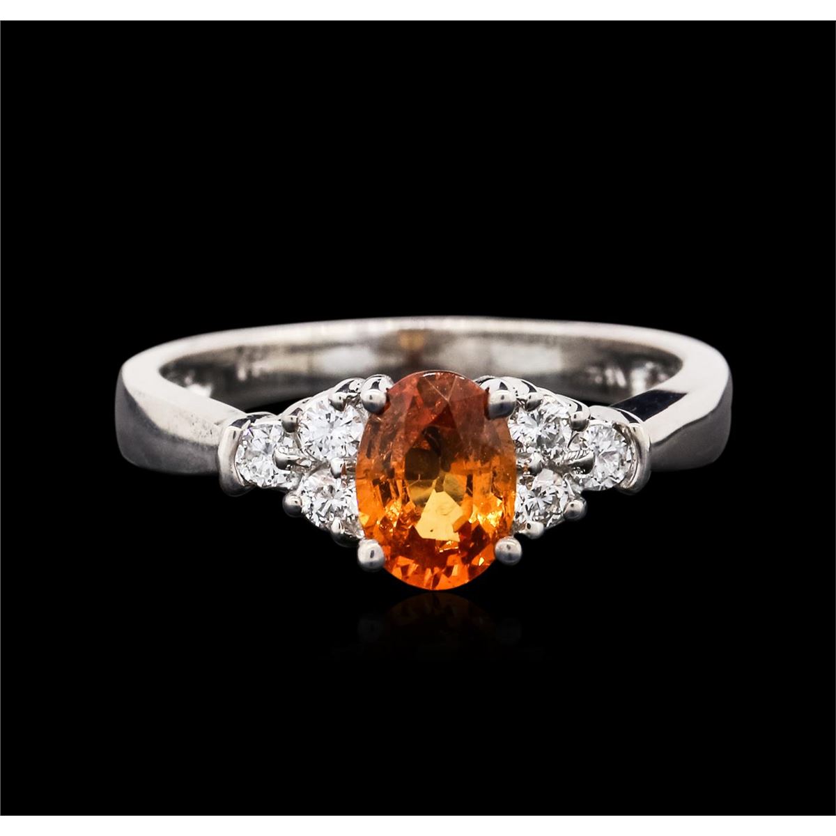 One ring featuring: 14KT white gold weighing 2.54 grams containing one spessartite center stone with a total weight of 1.09ct and round cut diamonds with a total weight of 0.21cts.