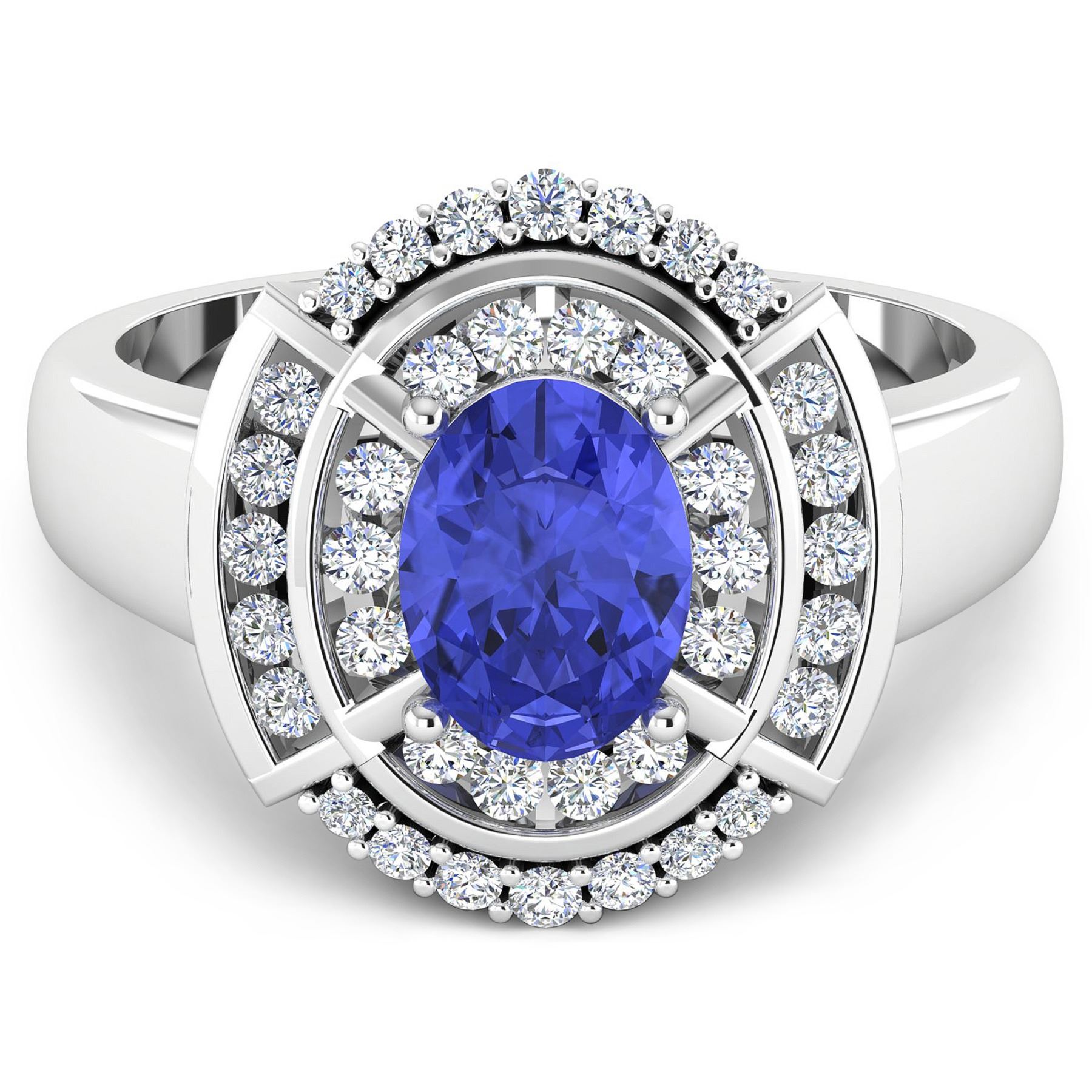Tanzanite (AA+) Oval 8x6mm - 1Pc + White Diamond F/C Round 1.50-1.60mm - 24Pcs + White Diamond F/C Round 1.20mm - 14Pcs (I1-I2/I color). Total weight of gemstone is 1.09cts. Total weight of Diamonds is 0.47cts. Total weight of this ring is 4.25 grams. Ring size 7.