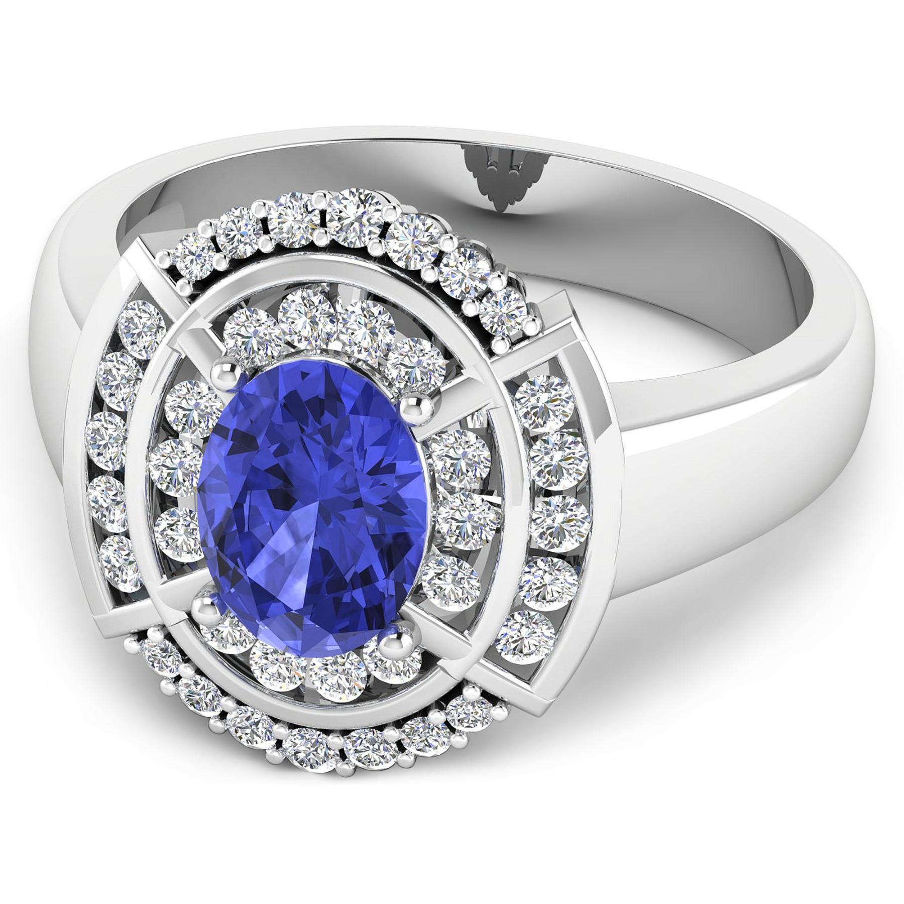 Tanzanite (AA+) Oval 8x6mm - 1Pc + White Diamond F/C Round 1.50-1.60mm - 24Pcs + White Diamond F/C Round 1.20mm - 14Pcs (I1-I2/I color). Total weight of gemstone is 1.09cts. Total weight of Diamonds is 0.47cts. Total weight of this ring is 4.25 grams. Ring size 7.