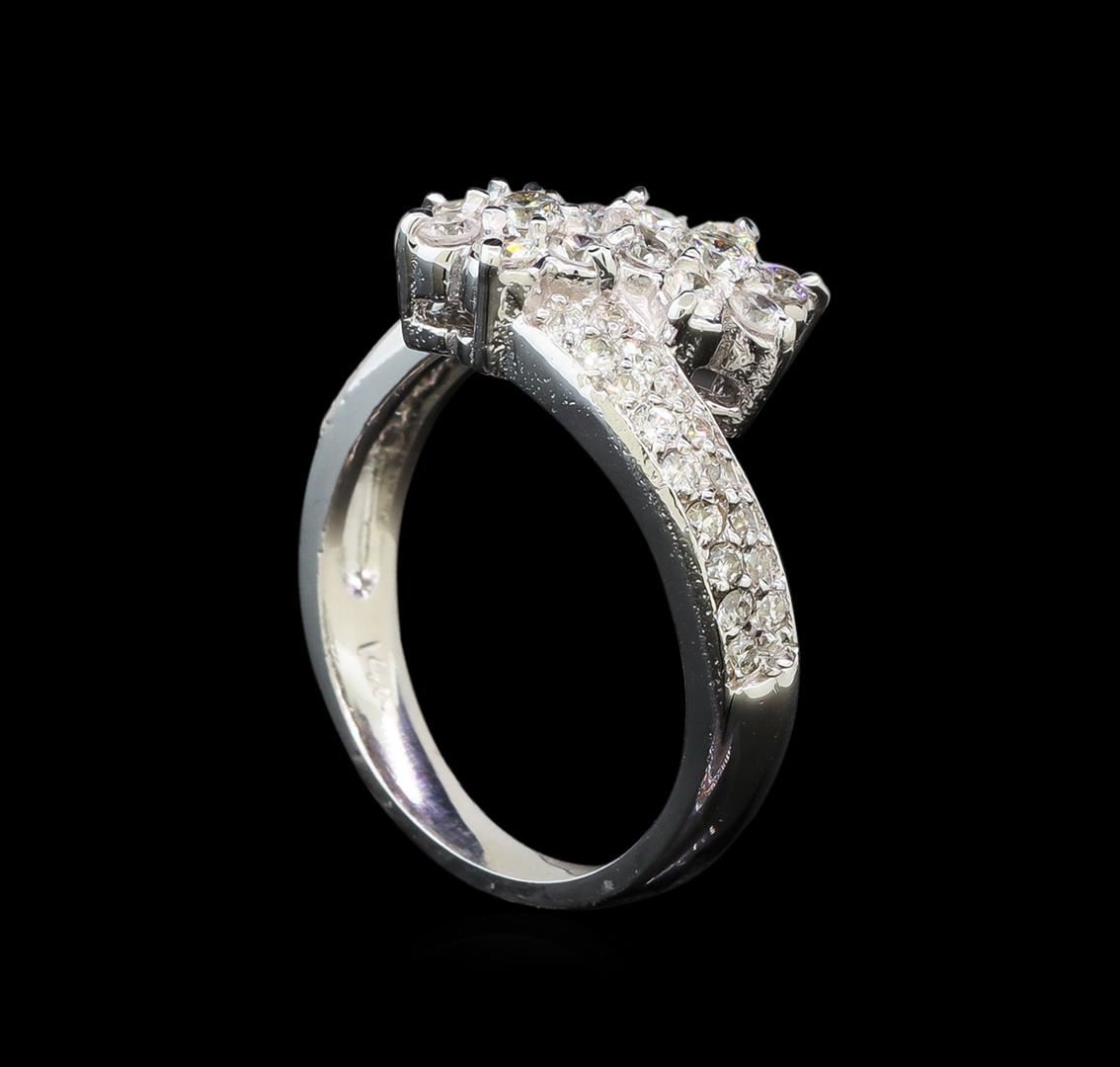 One electronically tested 14KT white gold ladies cast diamond ring with a bright polish finish. Identified with markings of "14K". Condition is new. Containing: Fifty prong set round brilliant cut diamonds, measuring 2.50 - 1.50 x 1.20mm (depth est.) approximate total weight of 50 Stones = 1.10ct. Clarity: SI-1 to I-1. Color: I - J, Cut is Good. All diamonds are graded in the mounting, unless otherwise stated. Total Weight of Diamonds 1.10ct. Total Weight of Ring 5.00 grams. GGL Appraised at $3,540.00.