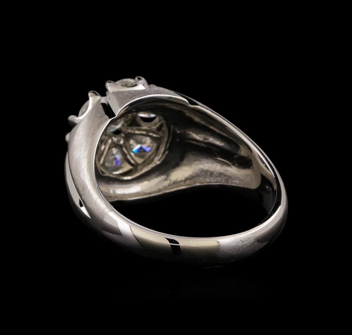 One electronically tested 14KT white gold mens combination cast & assembled diamond ring with a brushed finish. Identified with markings of "14K". Condition is new. Containing: Seven prong set round brilliant cut diamonds, measuring 3.50 - 3.50 x 2.10mm (depth est.) approximate total weight of 7 Stones = 1.10ct. Clarity: SI-2 to I-1. Color: H - I, Cut is Good. All diamonds are graded in the mounting, unless otherwise stated. Total Weight of Diamonds 1.10ct. Total Weight of Ring 10.80 grams. GGL Appraised at $5,130.00.