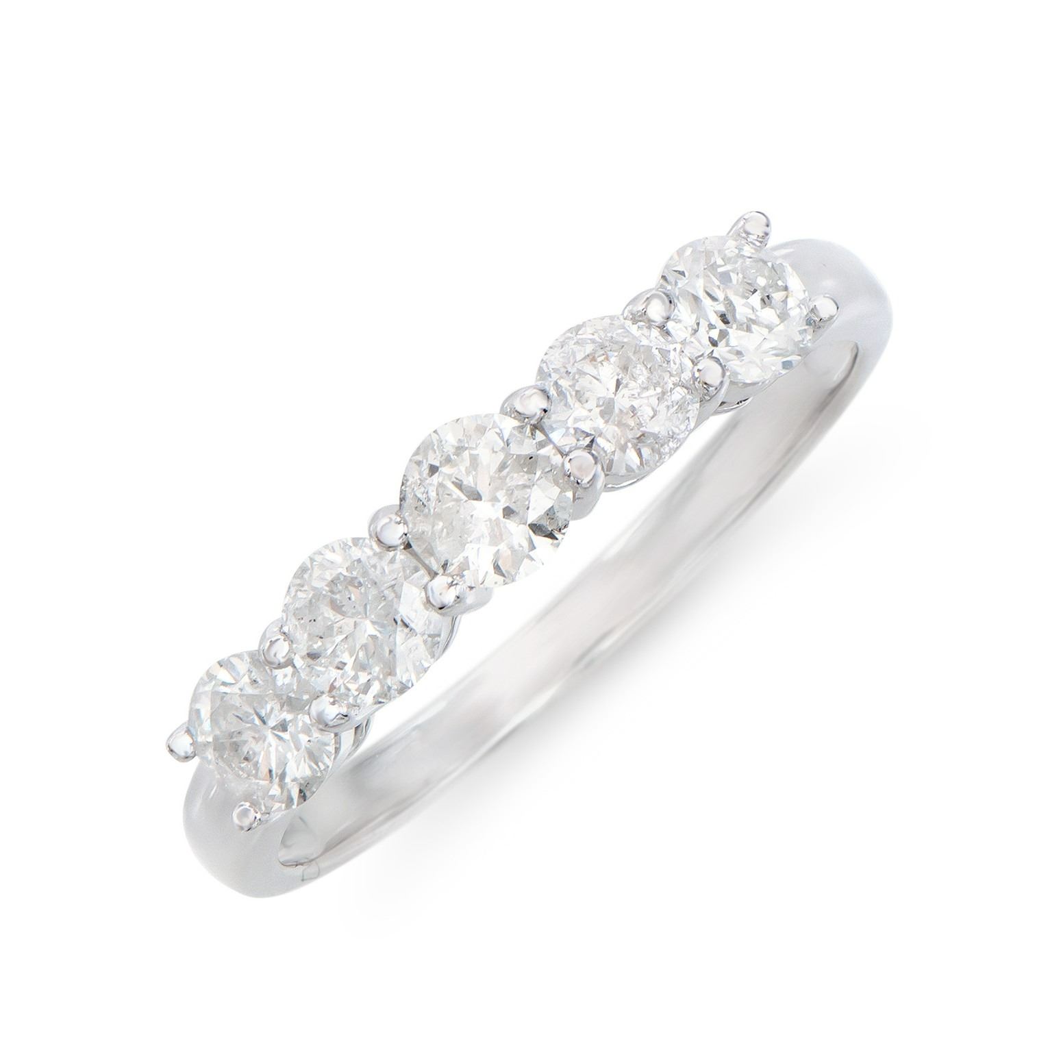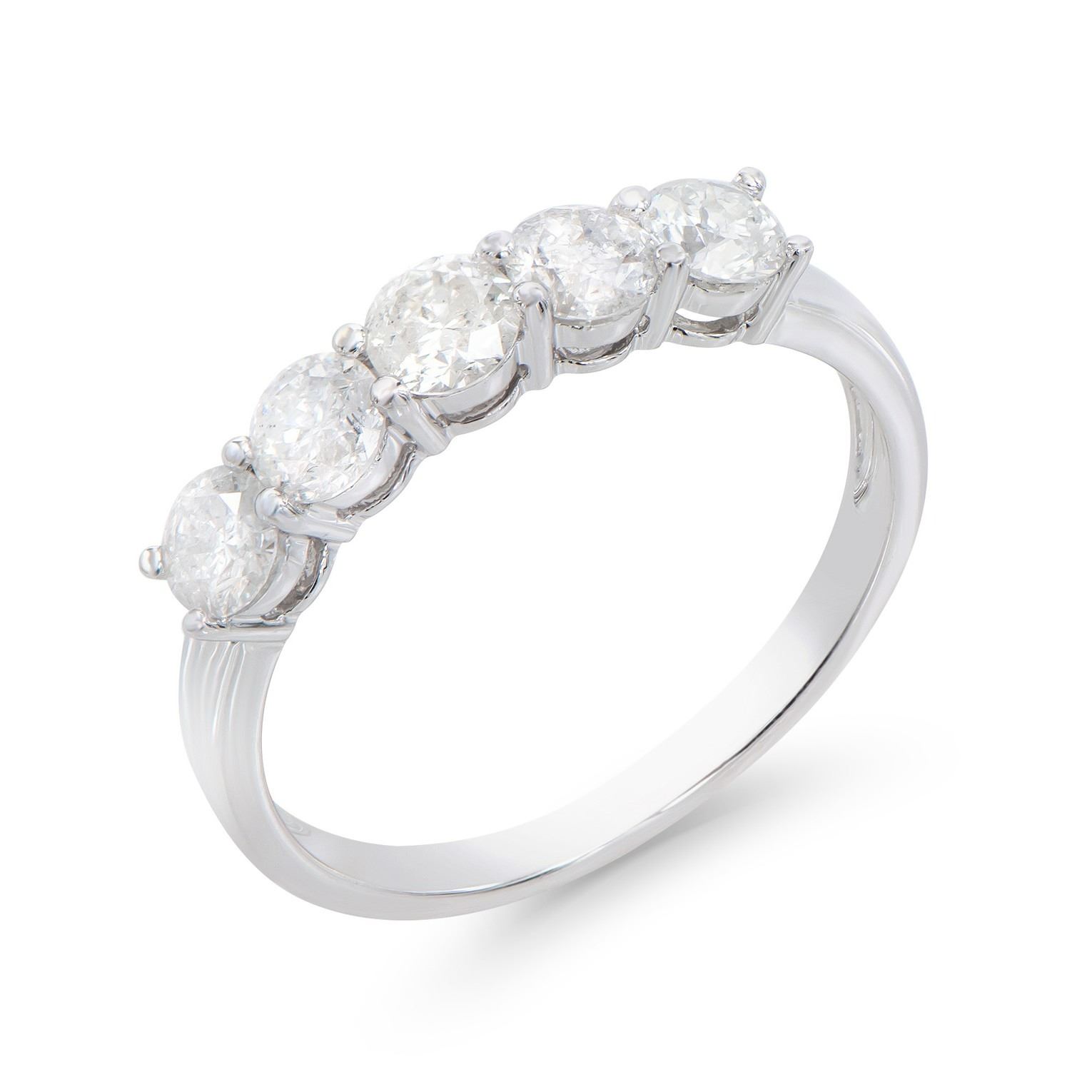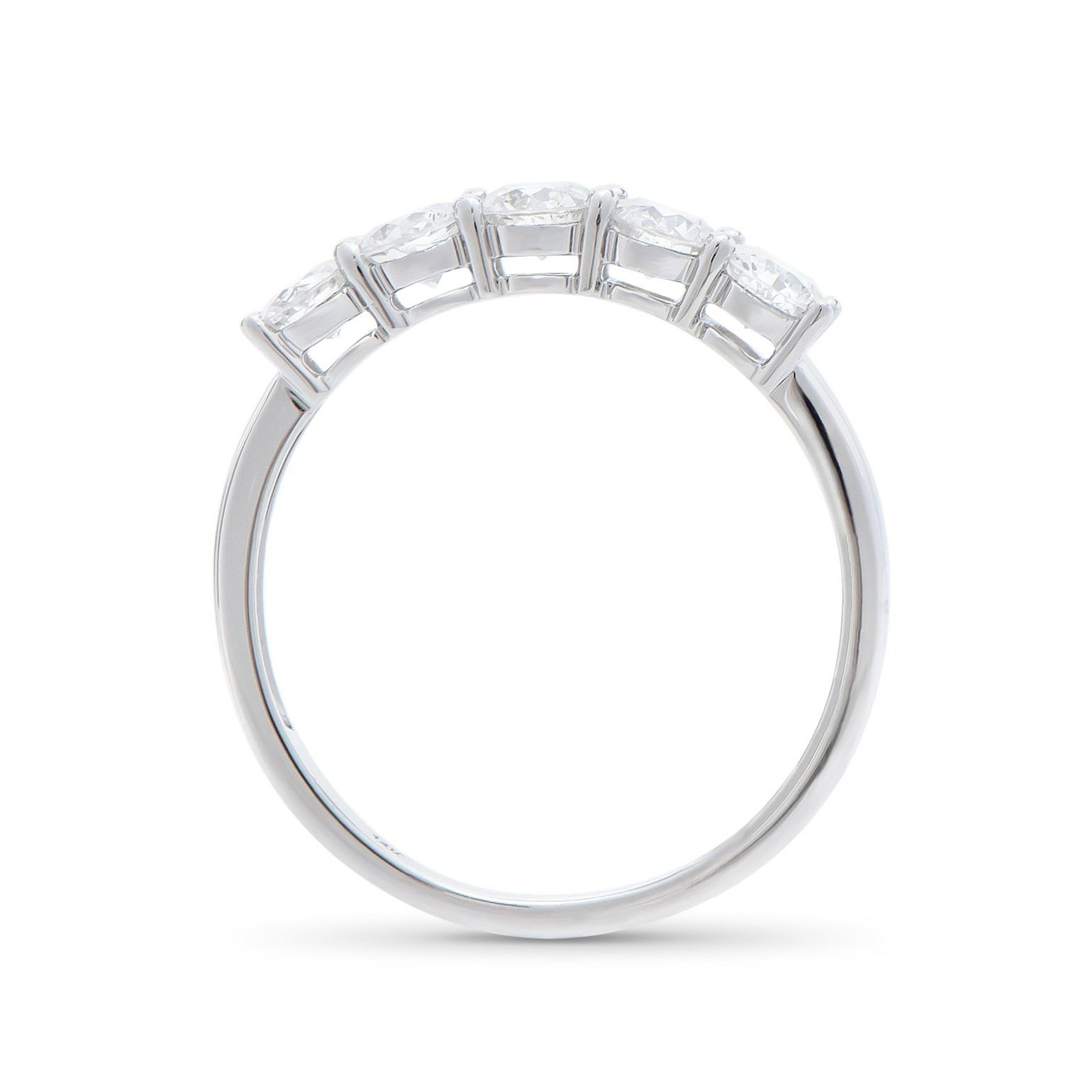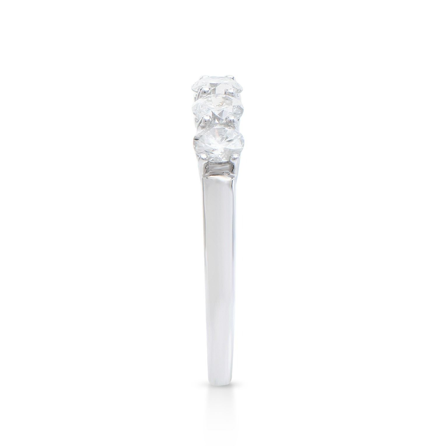 (5) round Diamonds with a total weight of 1.10cts with a color of H-I and clarity of I1-I2. Total weight of this ring is 2.1 grams. Ring size is 7.5.