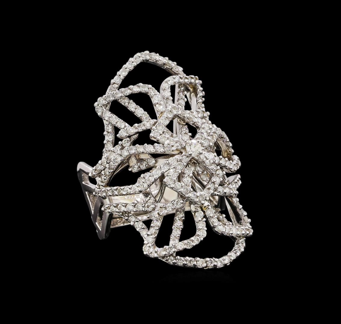 One electronically tested 14KT white gold ladies cast diamond ring with a bright polish finish. Identified with markings of "14K". Condition is new. Containing: Two Hundred Twenty-Four prong set round brilliant cut diamonds, measuring 2.10 - 1.10 x 0.96mm (depth est.) approximate total weight of 224 Stones = 1.11ct. Clarity: I-1 to I-2. Color: H - I, Cut is Good. All diamonds are graded in the mounting, unless otherwise stated. Total Weight of Diamonds 1.11ct. Total Weight of Ring 11.20 grams. GGL Appraised at $5,100.00.