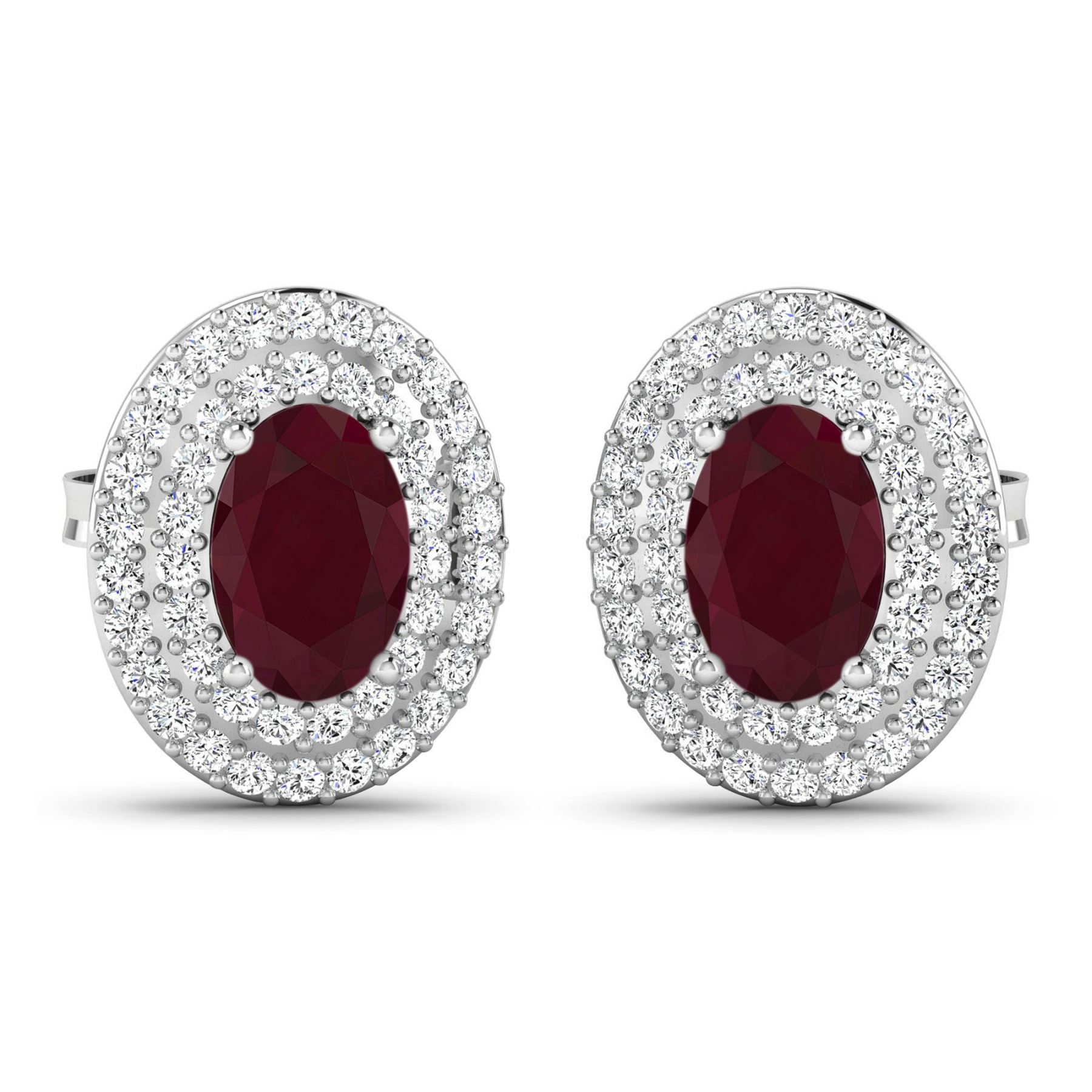 Ruby (AA) Oval 6x4mm - 2Pcs + White Diamond F/C Round 0.90mm - 90Pcs (I1-I2/I color) ( Push Post ) Total weight of gemstones is 1.12cts. Total Diamond weight is 0.31cts. Total weight of these earrings are 2.35 grams.