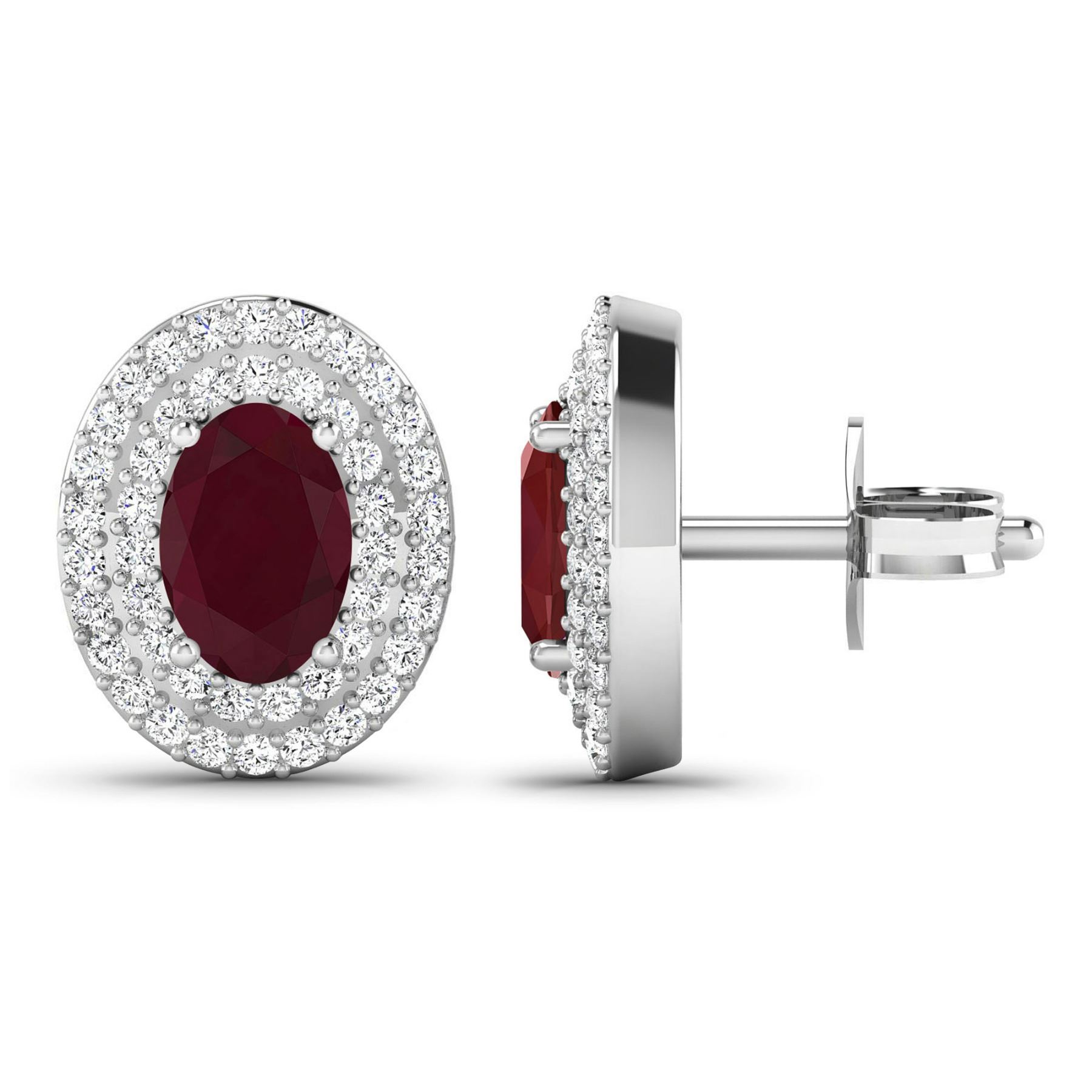 Ruby (AA) Oval 6x4mm - 2Pcs + White Diamond F/C Round 0.90mm - 90Pcs (I1-I2/I color) ( Push Post ) Total weight of gemstones is 1.12cts. Total Diamond weight is 0.31cts. Total weight of these earrings are 2.35 grams.