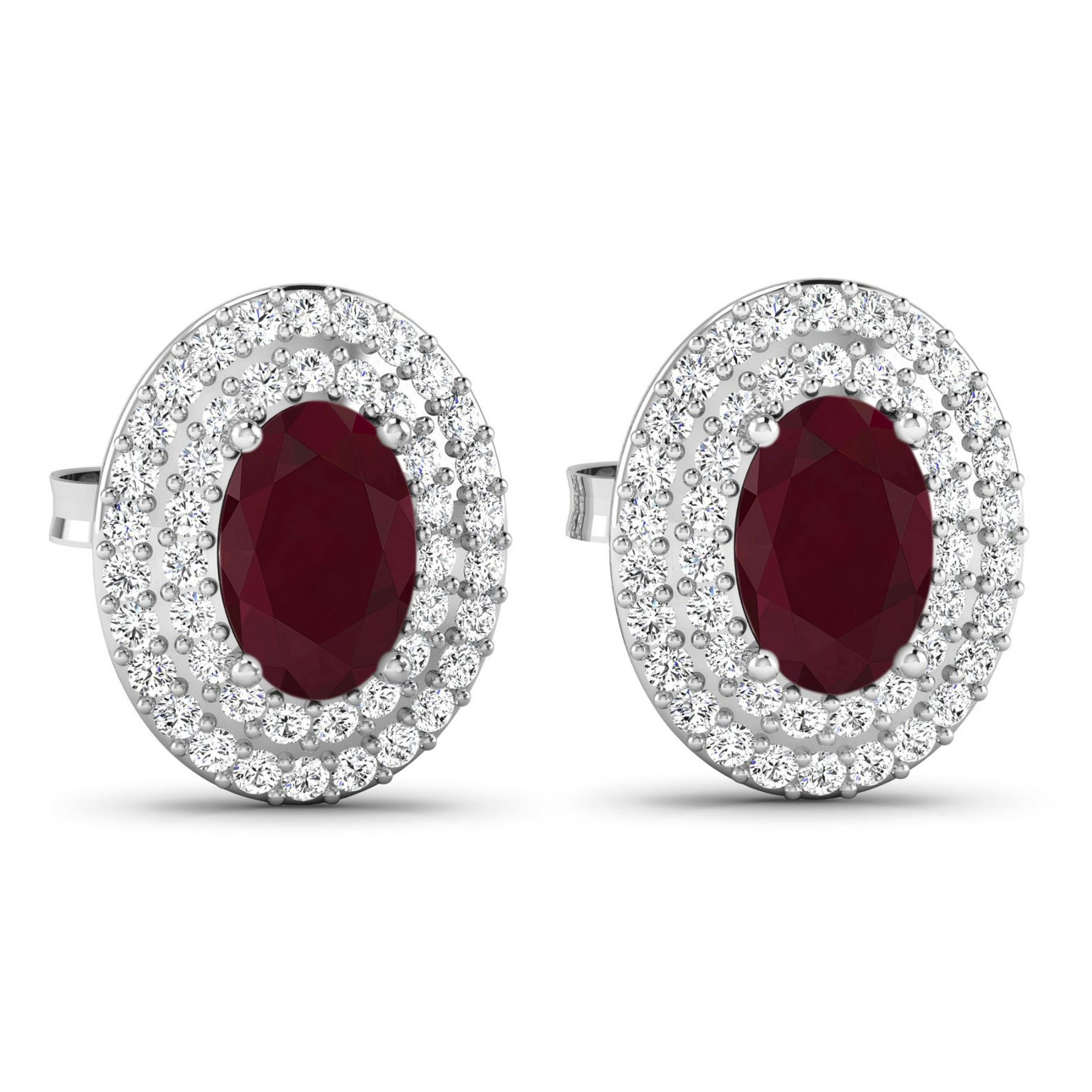 Ruby (AA) Oval 6x4mm - 2Pcs + White Diamond F/C Round 0.90mm - 90Pcs (I1-I2/I color) ( Push Post ) Total weight of gemstones is 1.12cts. Total Diamond weight is 0.31cts. Total weight of these earrings are 2.35 grams.