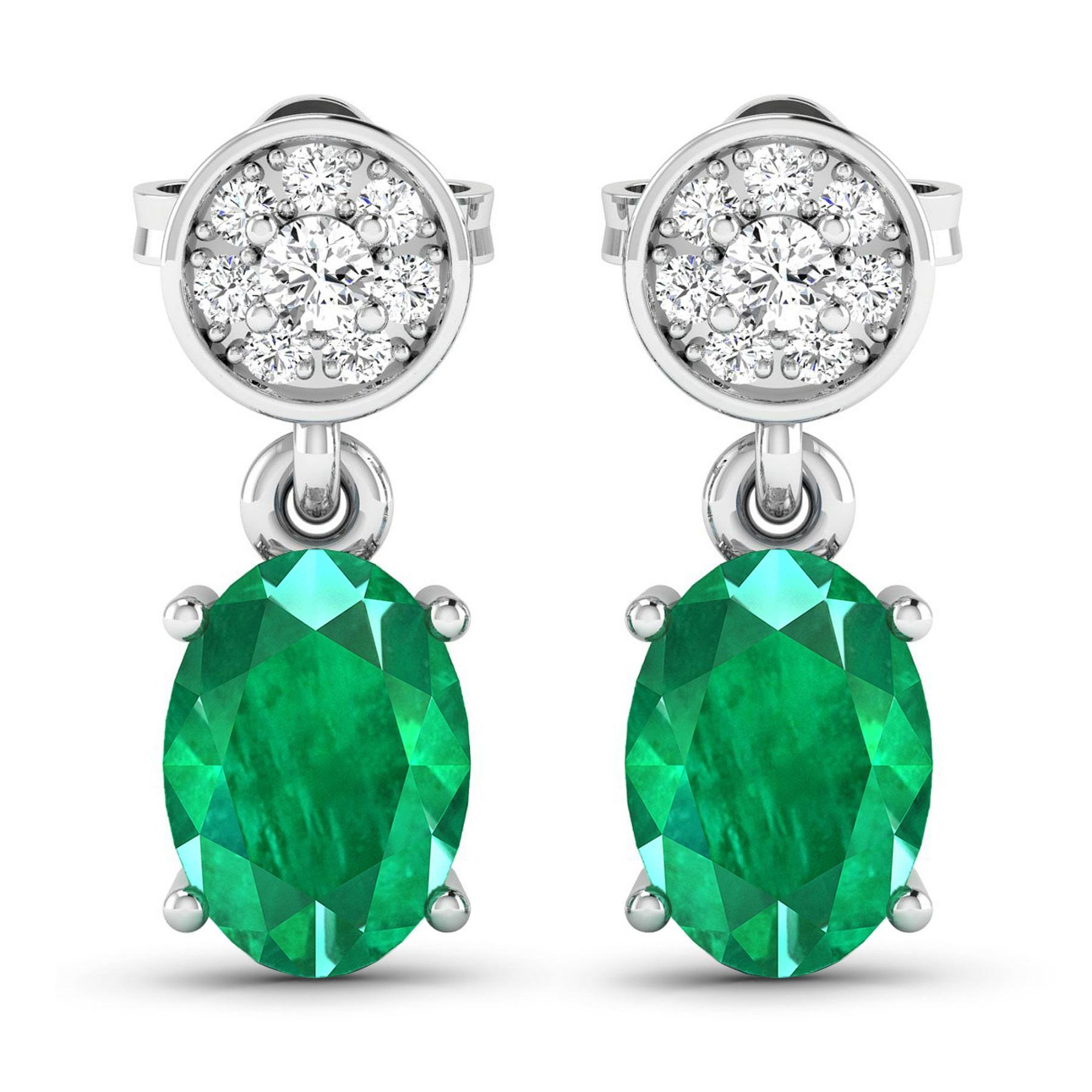 Zambian Emerald (AA) Oval 7x5mm - 2Pcs + White Diamond F/C Round 1.80mm - 2Pcs + White Diamond F/C Round 1.00mm - 14Pcs ( Push-Post ) ( I1-I2/I color ) Total weight of gemstones is 1.12cts. Total Diamond weight is 0.11cts. Total weight of these earrings are 1.9 grams.