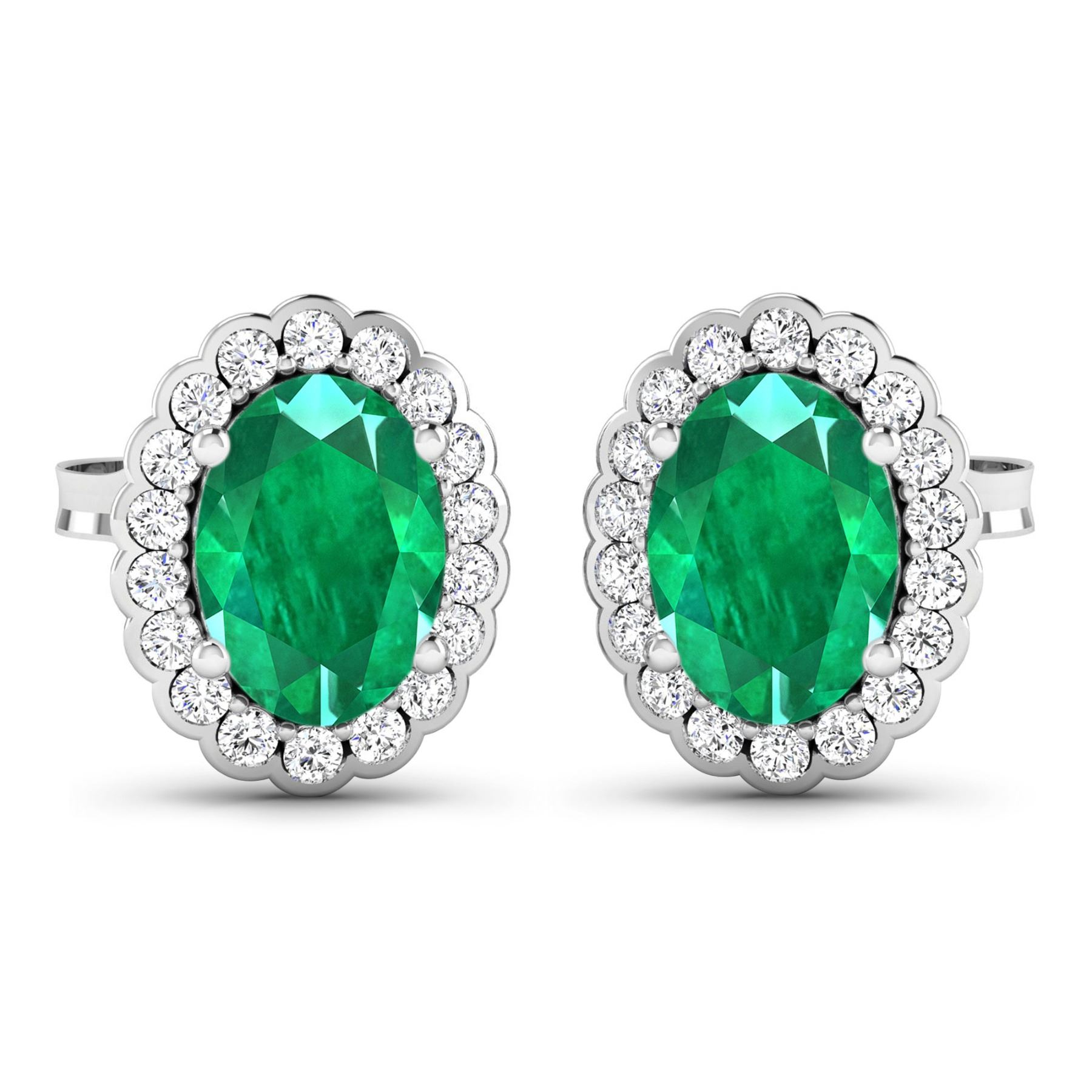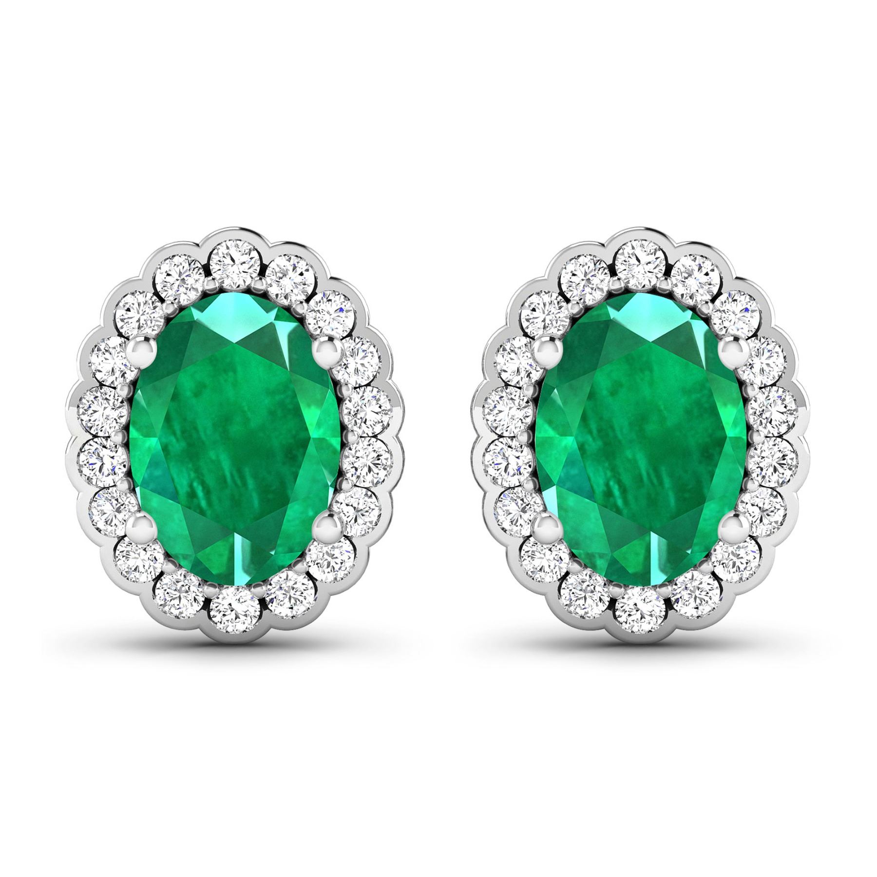 Zambian Emerald (AA) Oval 7x5mm - 2Pcs + White Diamond F/C Round 1.20mm - 36Pcs (I1-I2/I color) ( Push Post ) Total weight of gemstones is 1.12cts. Total Diamond weight is 0.28cts. Total weight of these earrings are 2.52 grams.