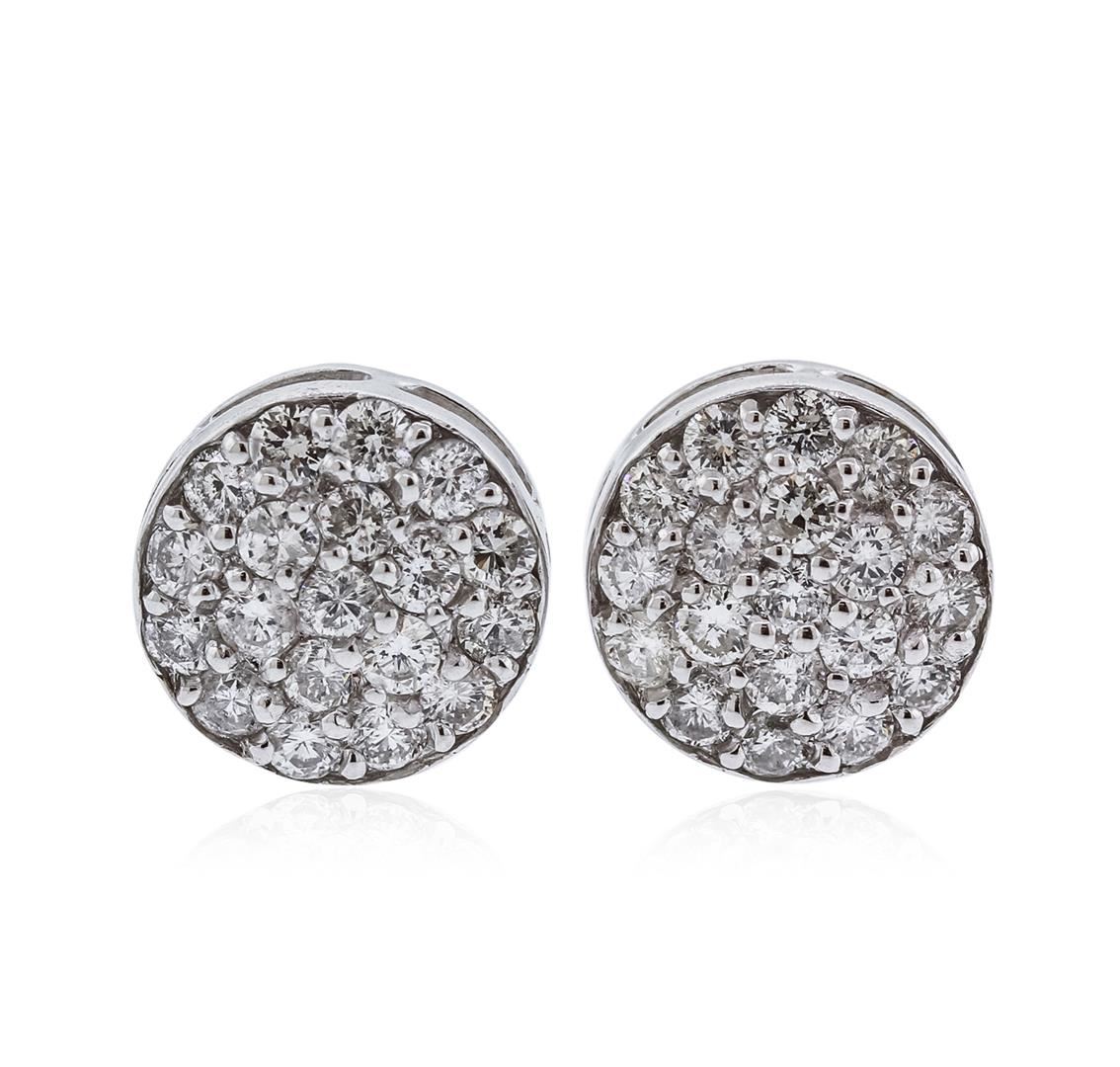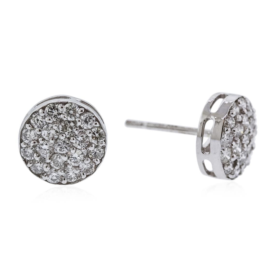 One pair of earrings featuring: 14KT white gold weighing 2.10 grams containing diamonds with a total weight of 1.14ct.