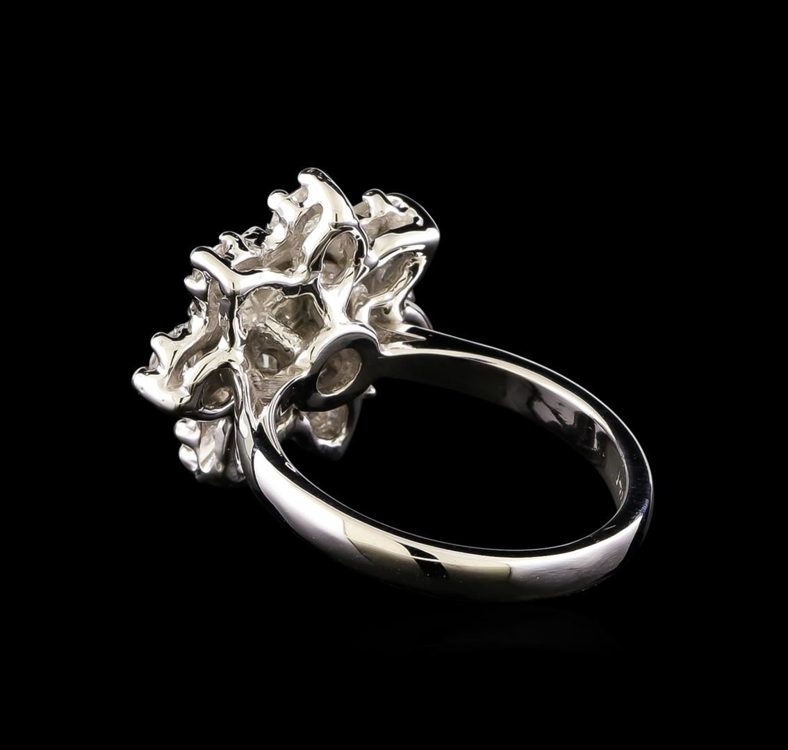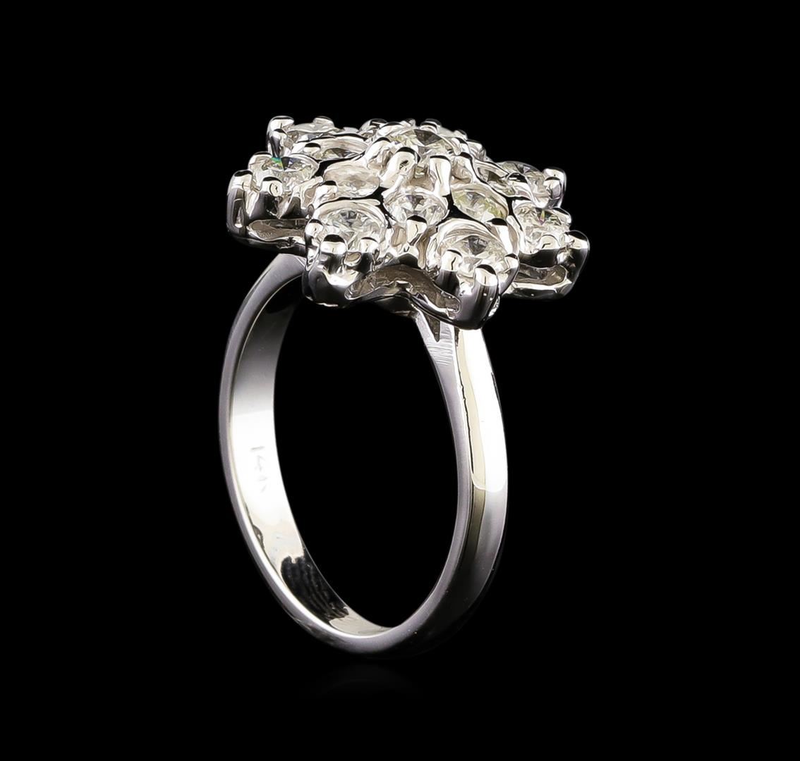 One electronically tested 14KT white gold ladies combination cast & die struck diamond ring with a flat shank with a bright polish finish. Identified with markings of "14K". Condition is new. Containing: Fifteen prong set round brilliant cut diamonds, measuring 3.00 - 2.50 x 1.65mm (depth est.) approximate total weight of 15 Stones = 1.14ct. Clarity: SI-2 to I-1. Color: J, Cut is Good. All diamonds are graded in the mounting, unless otherwise stated. Total Weight of Diamonds 1.14ct. Total Weight of Ring 5.90 grams. GGL Appraised at $4,570.00.