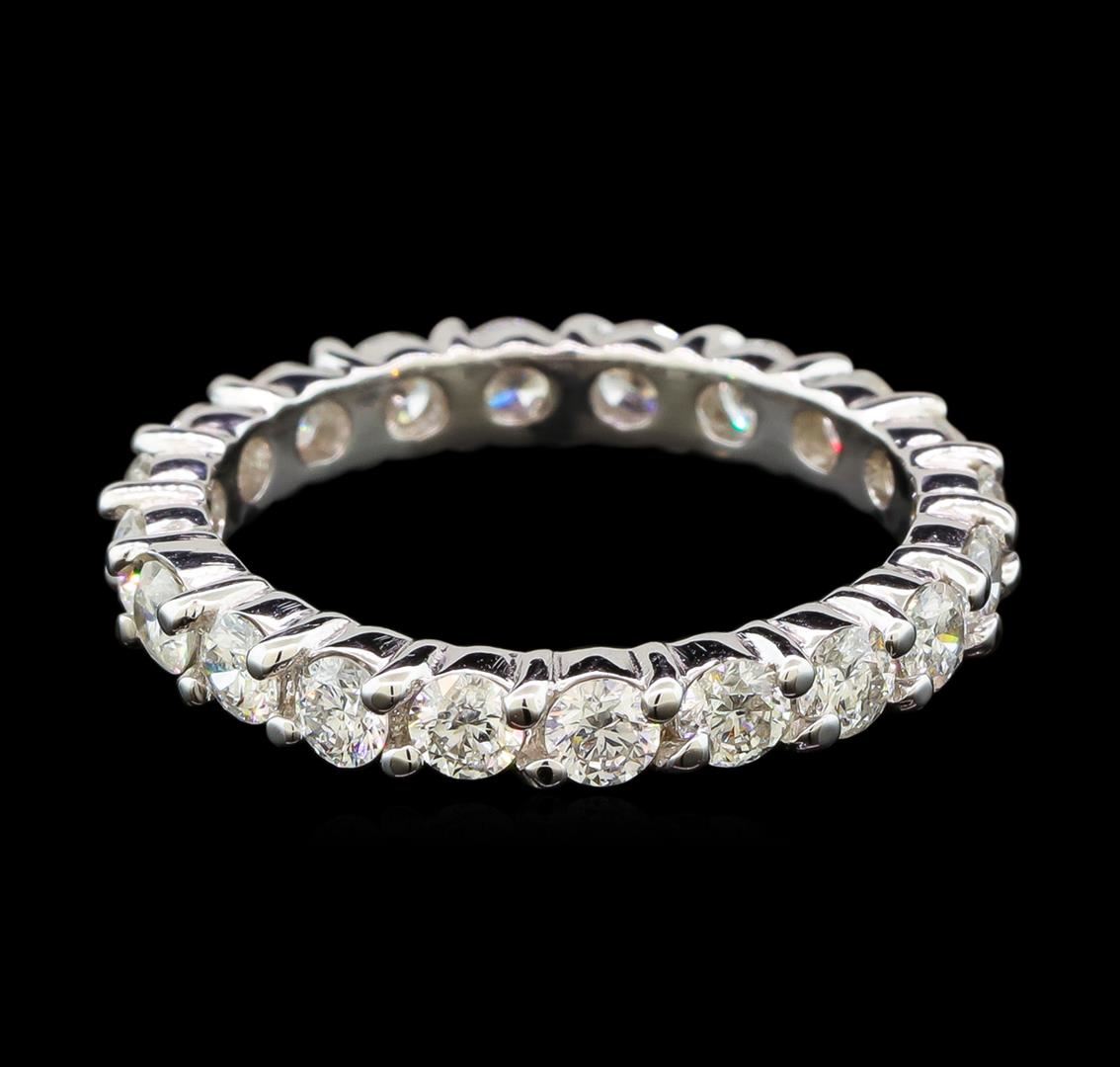 One electronically tested 14KT white gold ladies cast diamond eternity ring with a bright polish finish. Identified with markings of "14K". Condition is new. Containing: Twenty prong set round brilliant cut diamonds, measuring 2.50 - 2.50 x 1.50mm (depth est.) approximate total weight of 20 Stones = 1.14ct. Clarity: SI-1 to I-1. Color: I - J, Cut is Good. All diamonds are graded in the mounting, unless otherwise stated. Total Weight of Diamonds 1.14ct. Total Weight of Eternity Ring 2.70 grams. GGL Appraised at $3,050.00.