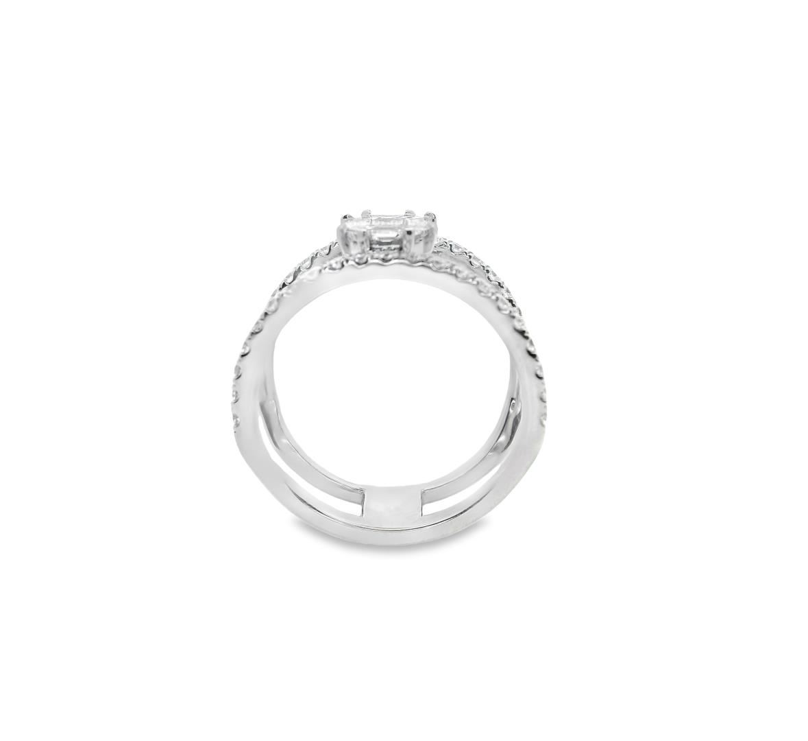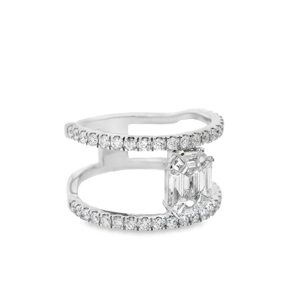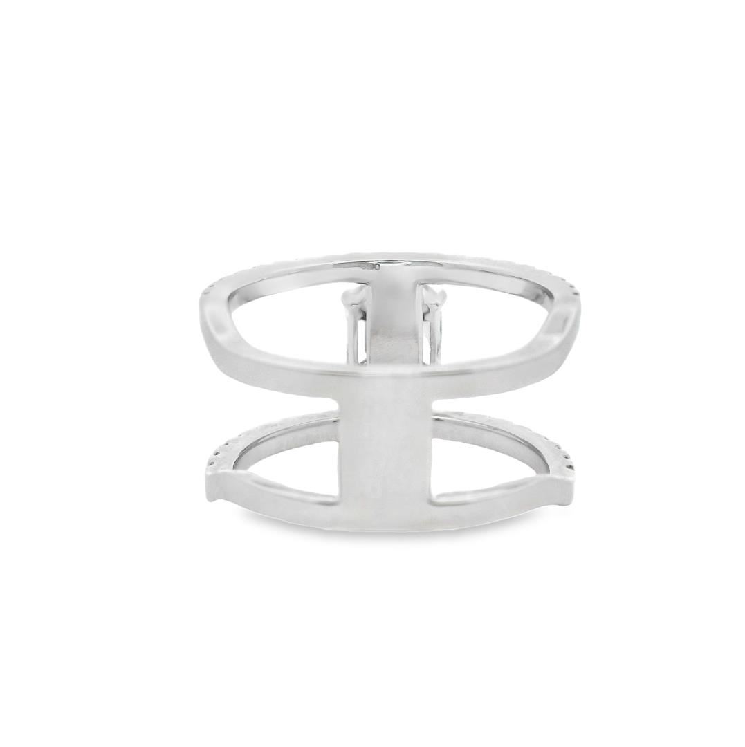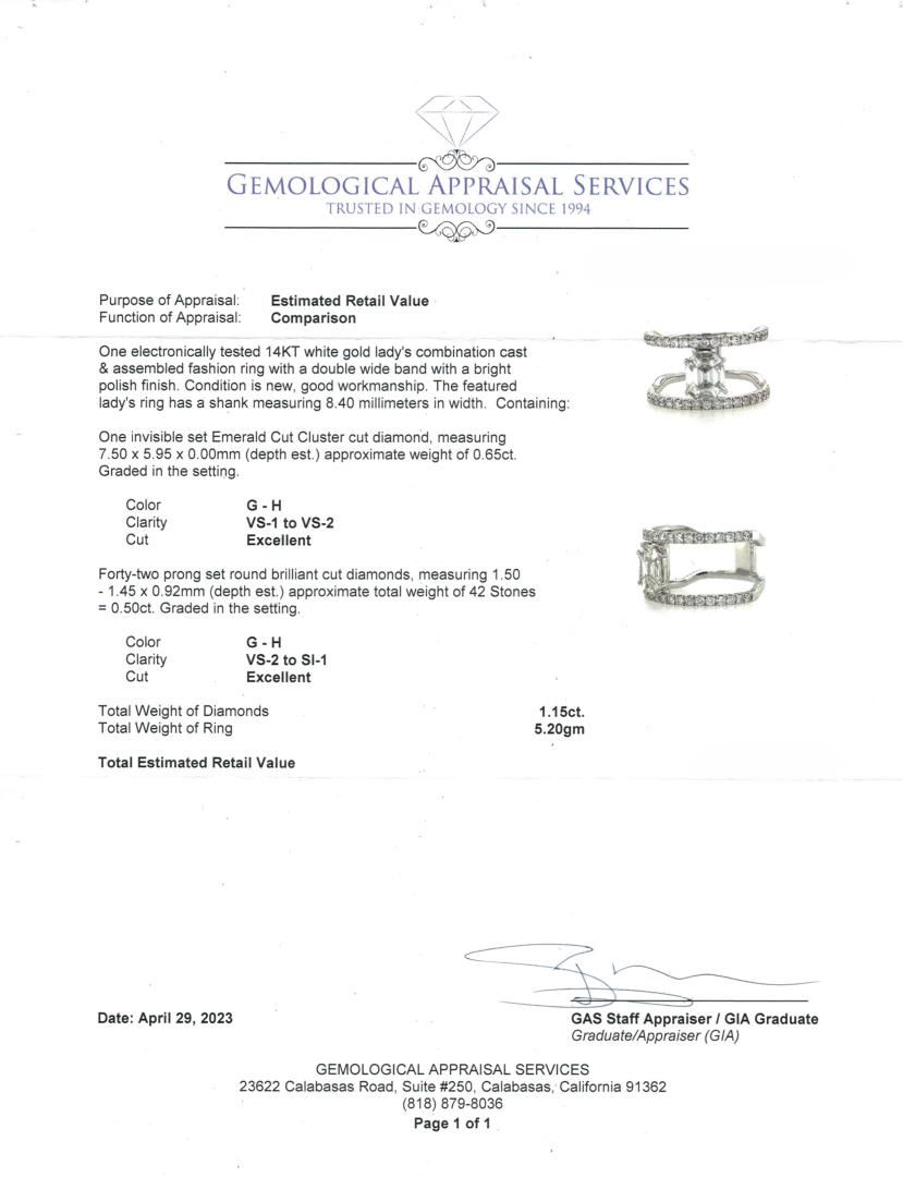 One electronically tested 14KT white gold lady's combination cast & assembled fashion ring with a double wide band with a bright polish finish. Condition is new, good workmanship. The featured lady's ring has a shank measuring 8.40 millimeters in width. C GAS Appraised.