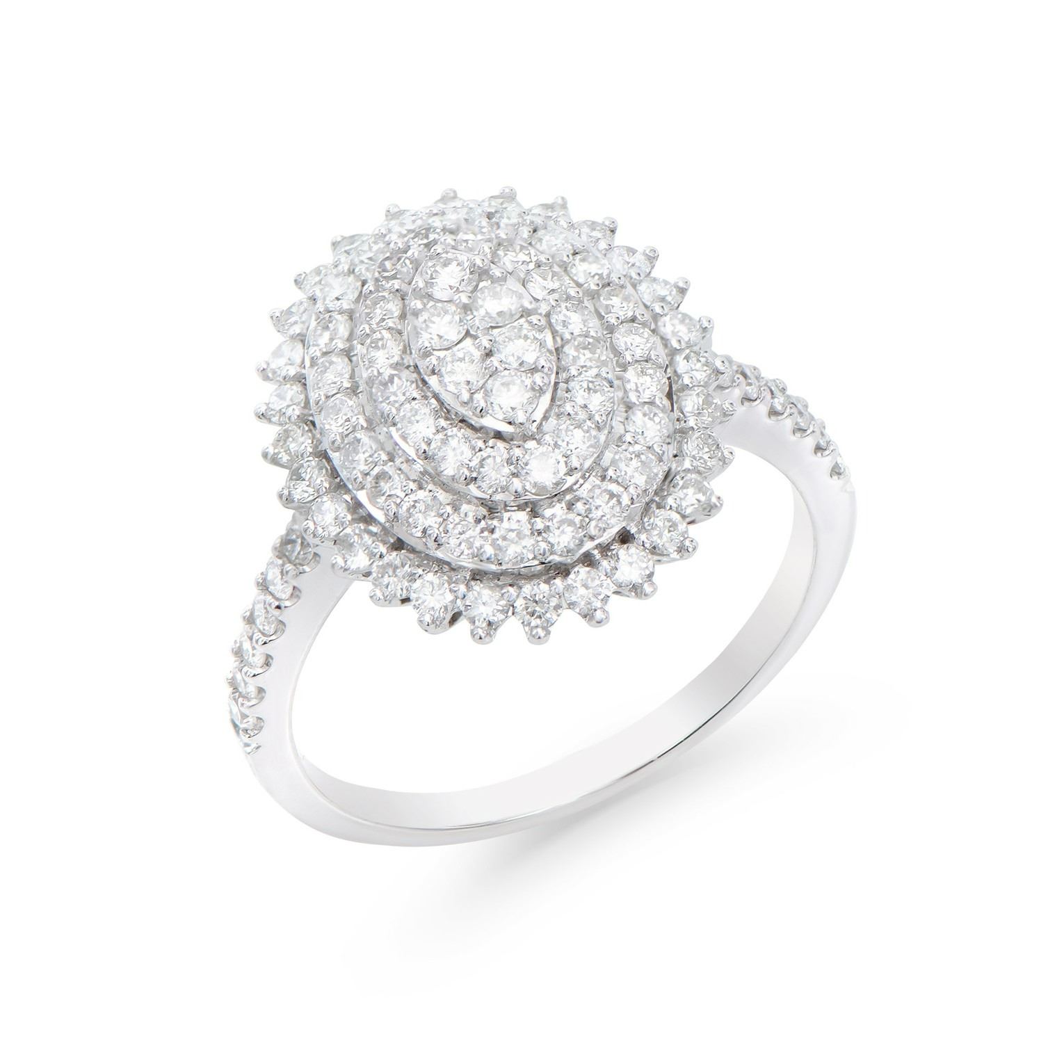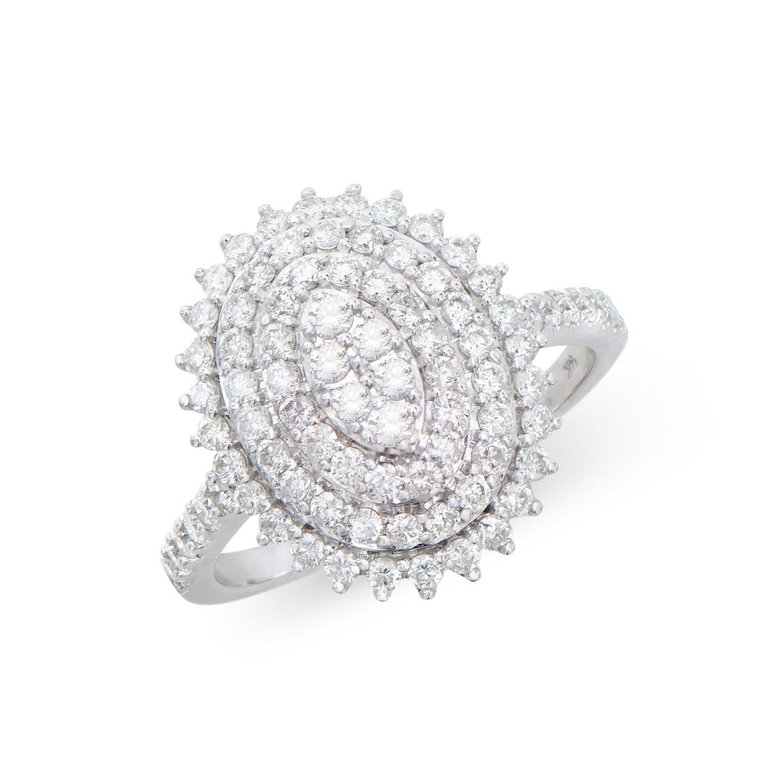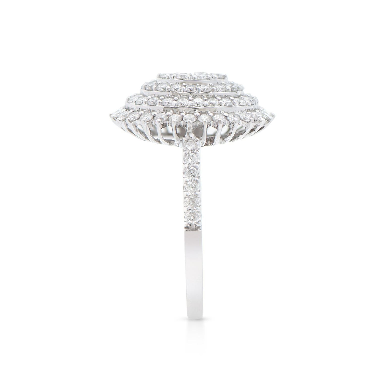 (84) round Diamonds with a total weight of 1.15cts with a color of H-I and clarity of I1-I2. Total weight of this ring is 4.00 grams. Ring size is 7.5.
