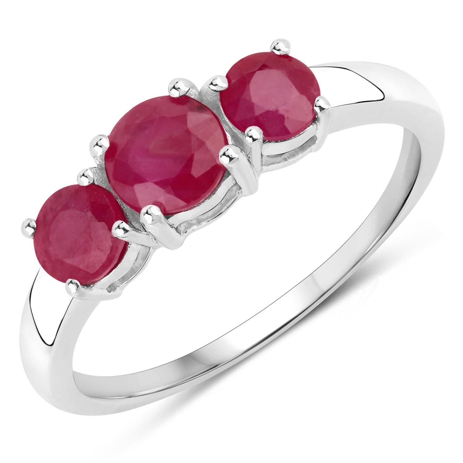 Ruby Round/5.00mm - 1/0.55 ctw Prong Setting Natural Heat Treated F + Ruby Round/4.00mm - 2/0.60 ctw Natural Heat Treated F. Ring size 7. Total weight of 2.33 grams.