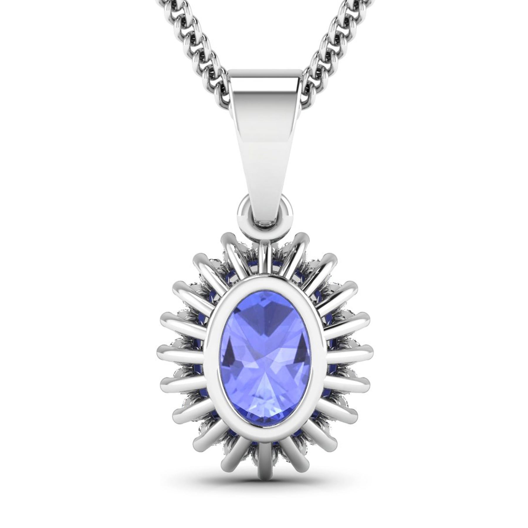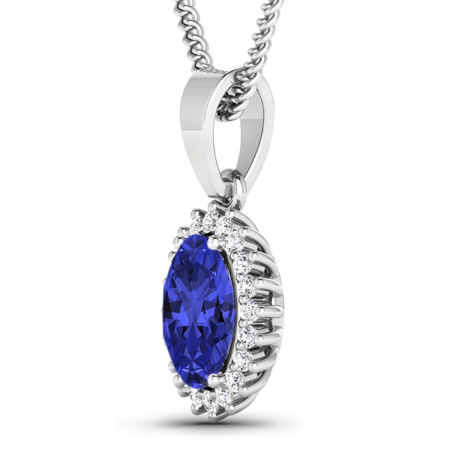 Tanzanite (AA+) Oval 8x6mm - 1Pc + White Diamond F/C Round 1.10mm - 20Pcs ( I1-I2/I color ) Total weight of gemstone is 1.15cts. Total Diamond weight is 0.13cts. Total weight of this pendant is 1.7 grams.