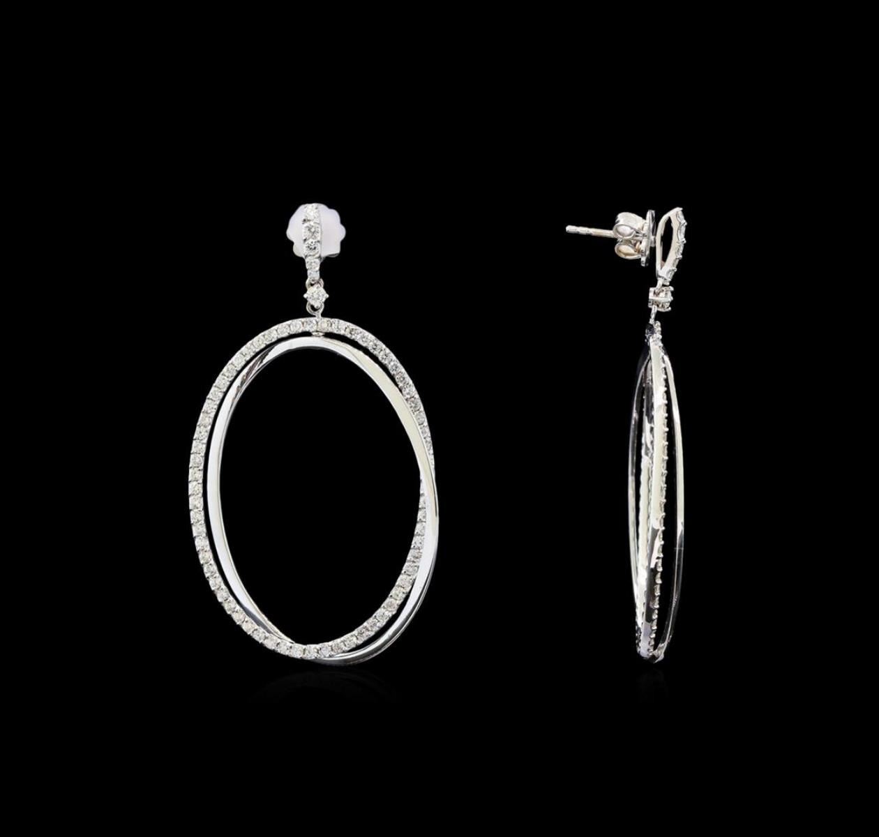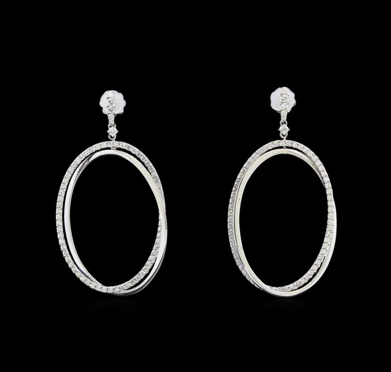 One pair electronically tested 14KT white gold ladies cast diamond earrings with friction posts with a bright polish finish. Identified with markings of "585". Condition is new. Containing: One Hundred Sixty prong set round brilliant cut diamonds, measuring 1.80 - 1.30 x 0.93mm (depth est.) approximate total weight of 160 Stones = 1.16ct. Clarity: SI-1 to I-1. Color: H - I, Cut is Good. All diamonds are graded in the mounting, unless otherwise stated. Total Weight of Diamonds 1.16ct. Total Weight of Earrings 9.40 grams. GGL Appraised at $5,435.00.