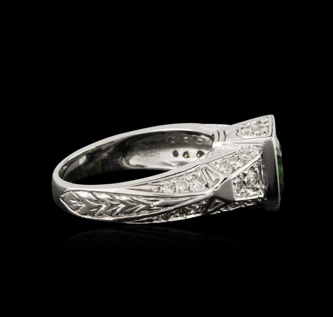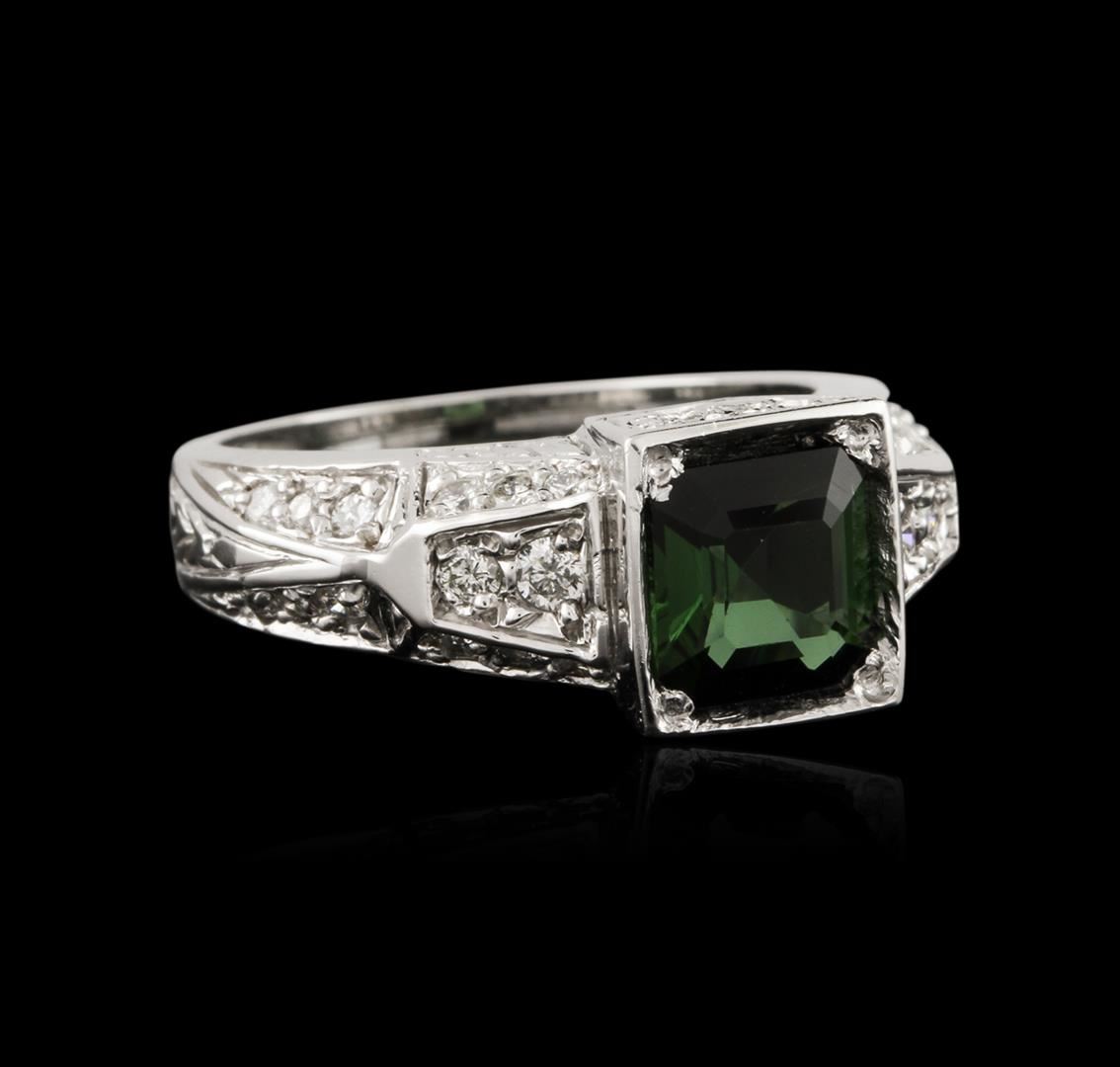 One ring featuring: 14KT white gold weighing 6.03 grams containing one green tourmaline center stone with a total weight of 1.17ct and pave set round diamonds with a total weight of 0.60ct.