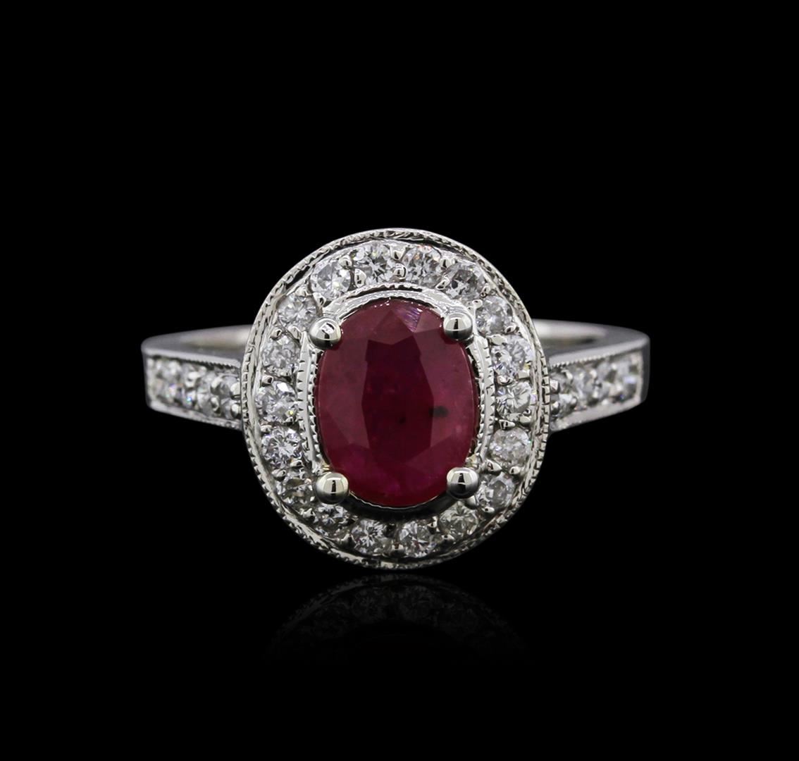 One ring featuring: 14KT white gold weighing 5.98 grams containing one ruby center stone with a total weight of 1.18ct and 26 diamonds with a total weight of 0.51ct.