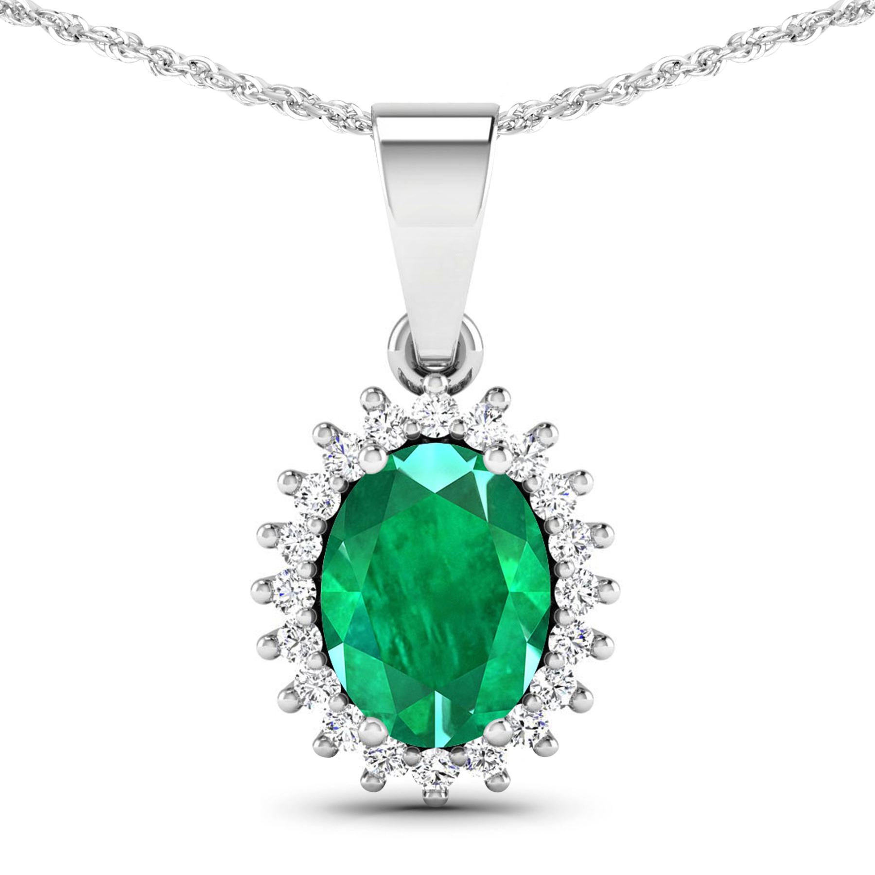 14KT White Gold 1.1ctw Zambian Emerald and Diamond Pendant