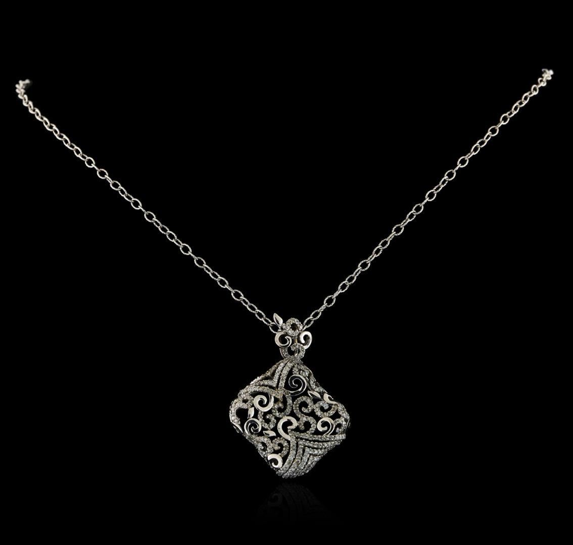 One electronically tested 14KT white gold ladies combination cast & assembled pendant & chain 17.0" long, light cable link with a lobster claw clasp with a bright polish finish. Identified with markings of "14K 585". Condition is new. Containing: Three Hundred Thirty-Three prong set round brilliant cut diamonds, measuring 1.00 - 1.00 x 0.60mm (depth est.) approximate total weight of 333 Stones = 1.20 ct. Clarity: I-1 to I-3. Color: I - J, Cut is Good. All diamonds are graded in the mounting, unless otherwise stated. Total Weight of Diamonds 1.20 ct. Total Weight of Pendant & Chain 12.60 grams. GGL Appraised.