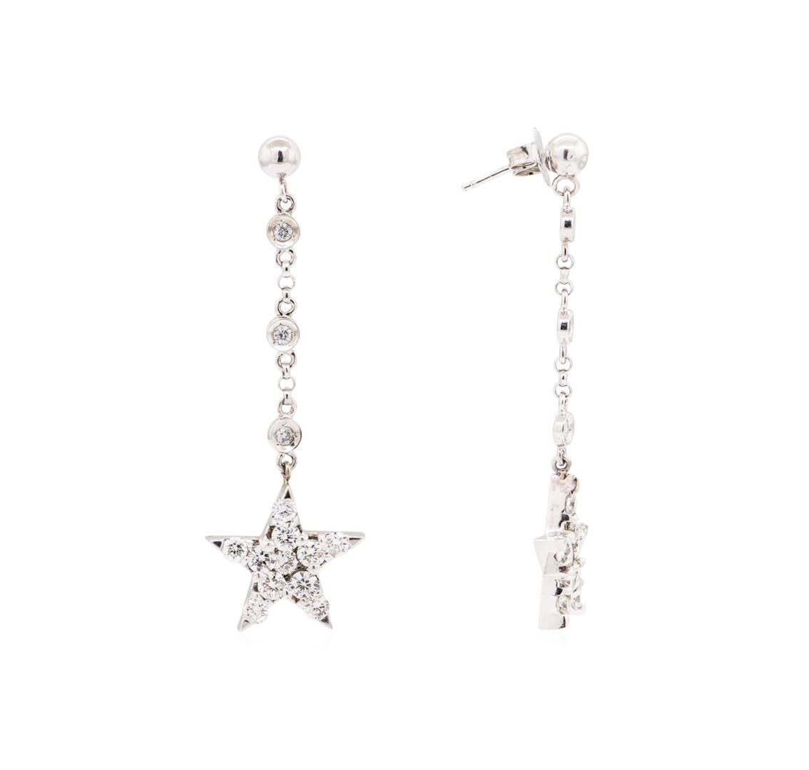One pair of friction post star dangle earrings featuring: 14KT white gold weighing 4.2 grams containing diamonds weighing 1.20ctw.