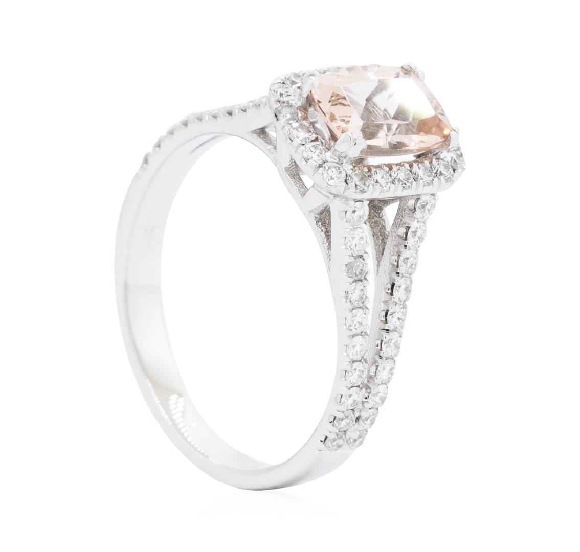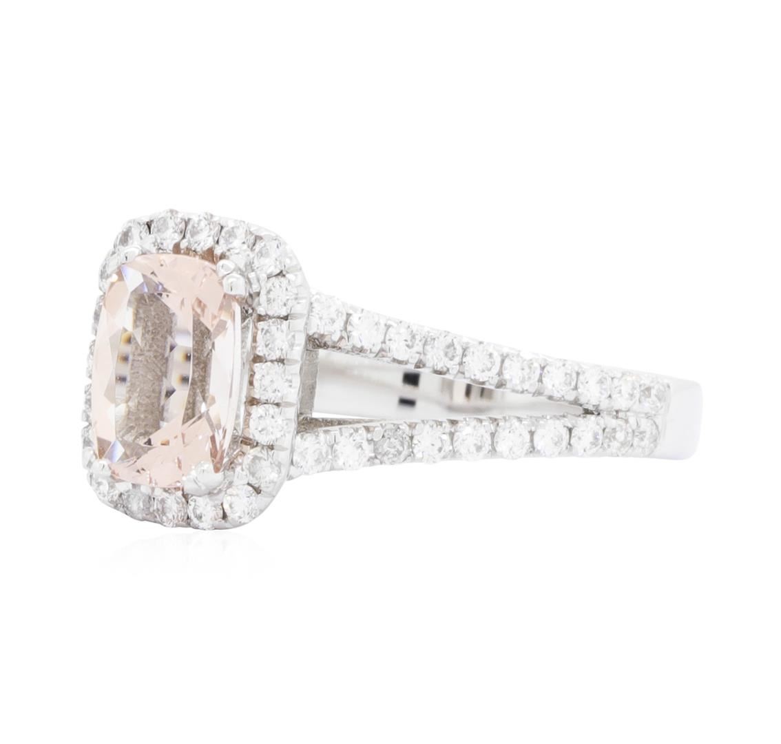 One ring featuring: 14KT white gold weighing 3.7 grams containing one morganite weighing 1.21ct and diamonds weighing 0.60ctw. The ring is a size 7.
