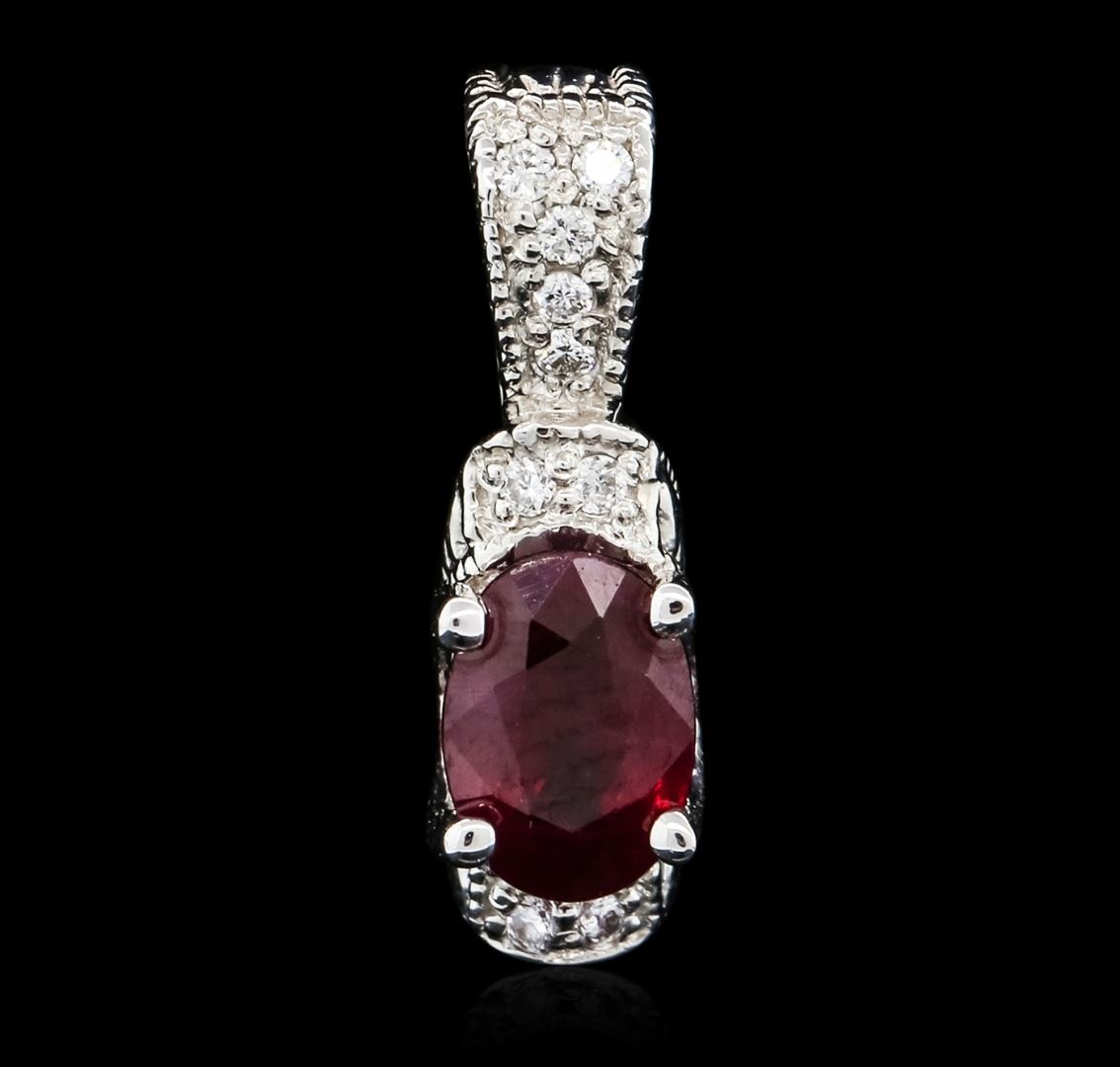 One pendant without chain featuring: 14KT white gold weighing 2.18 grams containing one ruby with a total weight of 1.21ct and diamonds with a total weight of 0.06cts.