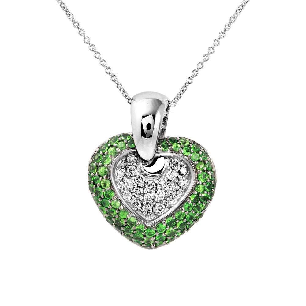 14KT White Gold 1.22ctw Tsavorite and Diamond Pendant with Chain