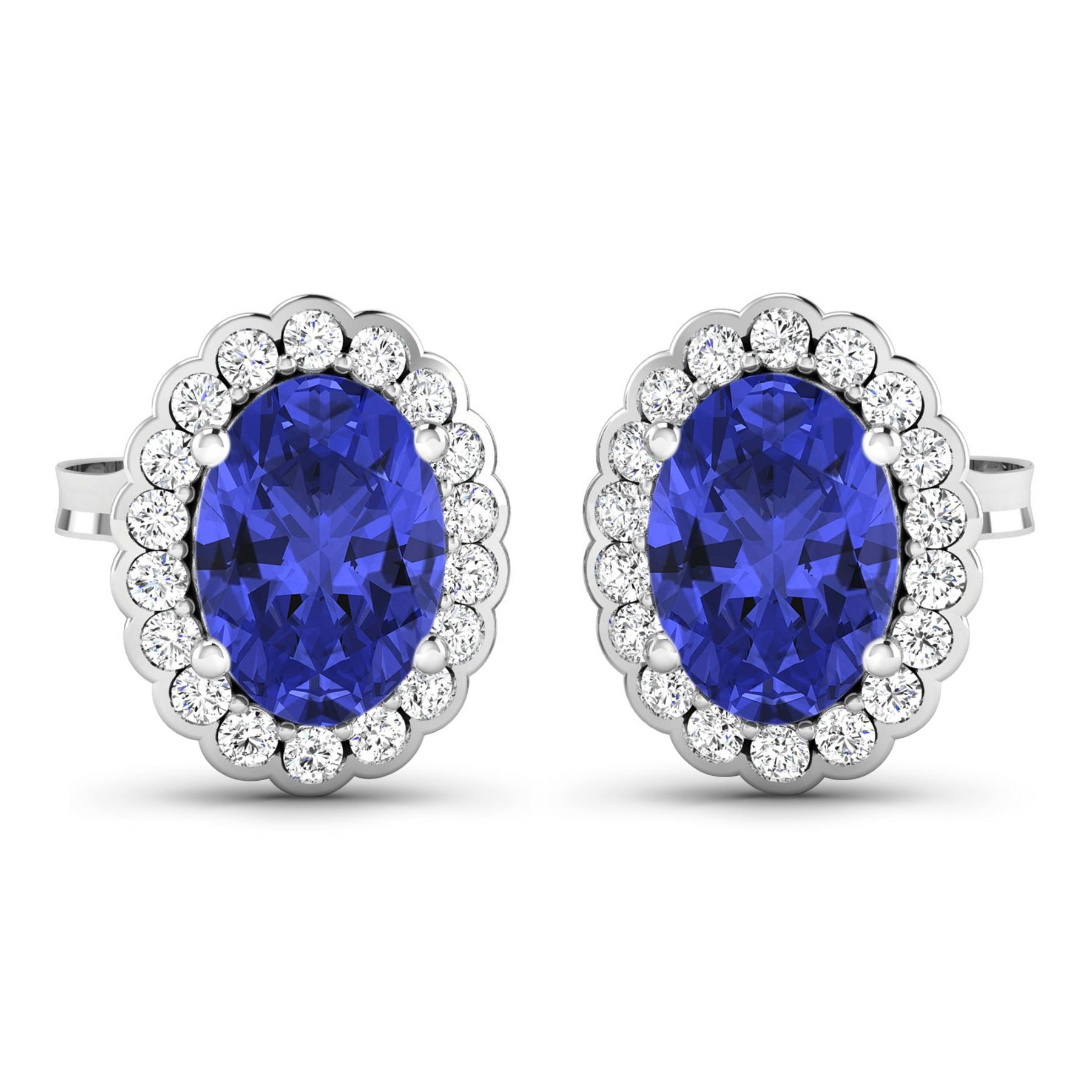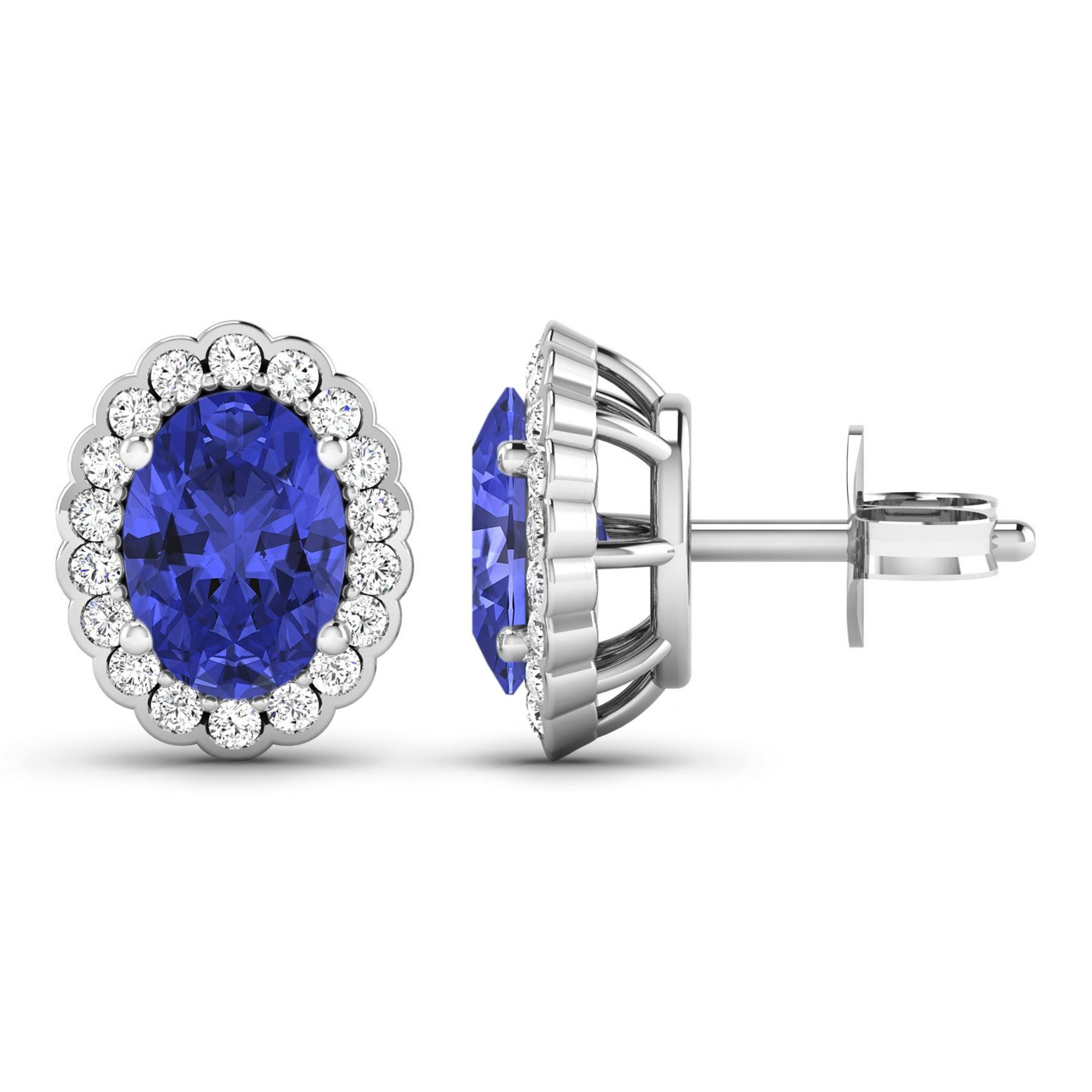 Tanzanite (AA+) Oval 7x5mm - 2Pcs + White Diamond F/C Round 1.20mm - 36Pcs ( I1-I2/I color ) ( Push Post ) Total weight of gemstones is 1.24cts. Total Diamond weight is 0.28cts. Total weight of these earrings are 2.55 grams.
