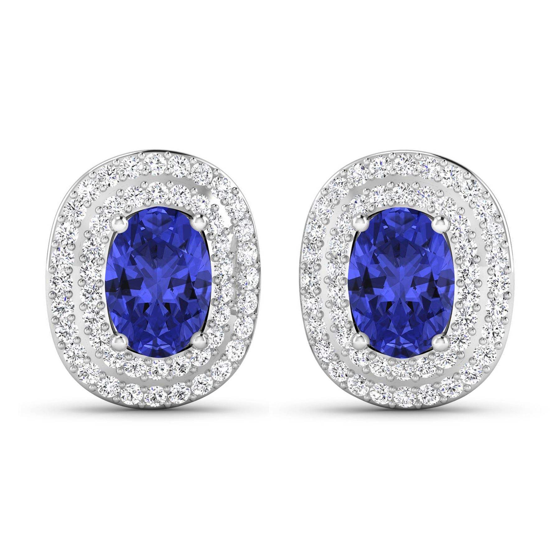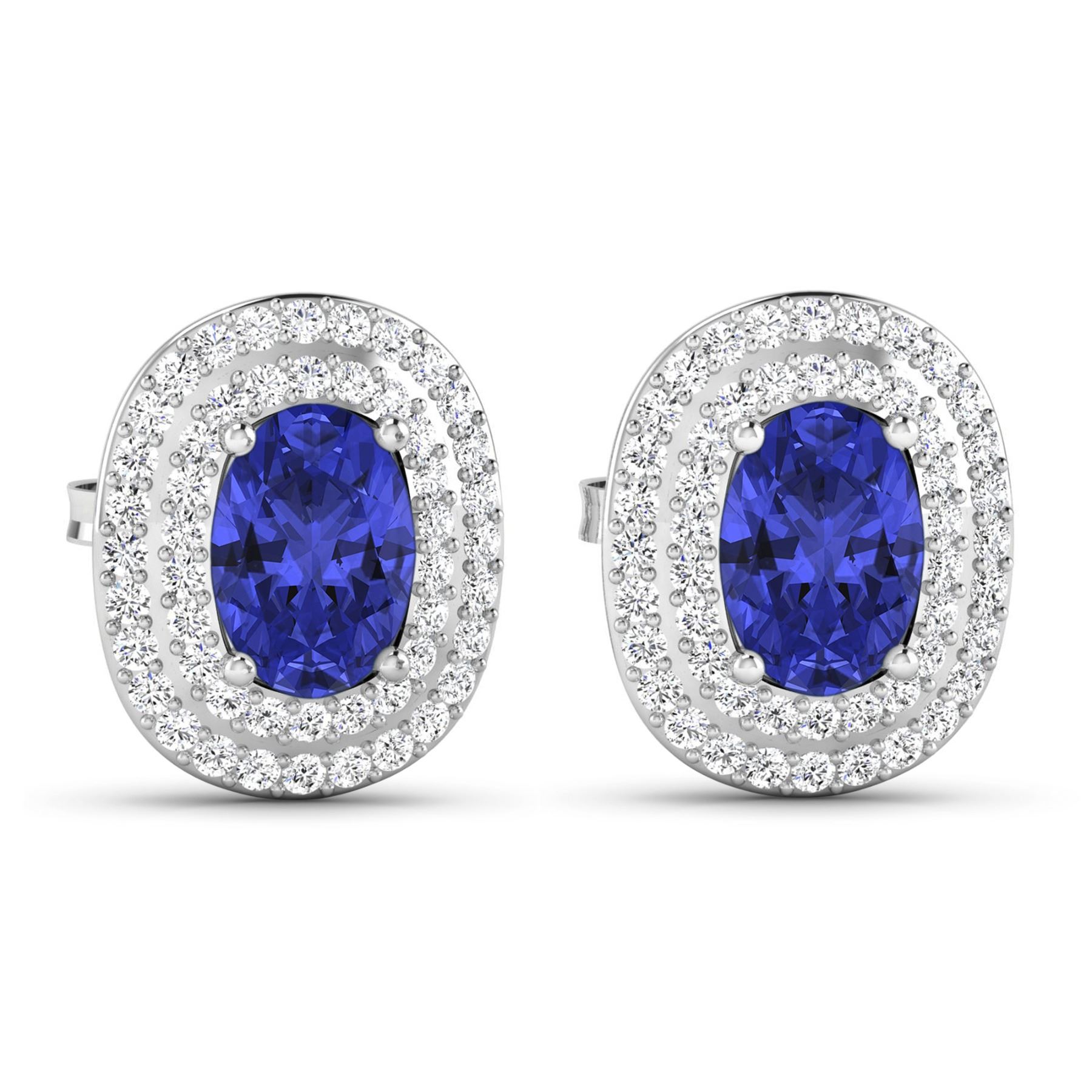 Tanzanite (AA+) Oval 7x5mm - 2Pcs + White Diamond F/C Round 1.00mm - 100Pcs ( I1-I2/I color ) ( Push Post ) Total weight of gemstones is 1.24cts. Total Diamond weight is 0.45cts. Total weight of these earrings are 2.69 grams.