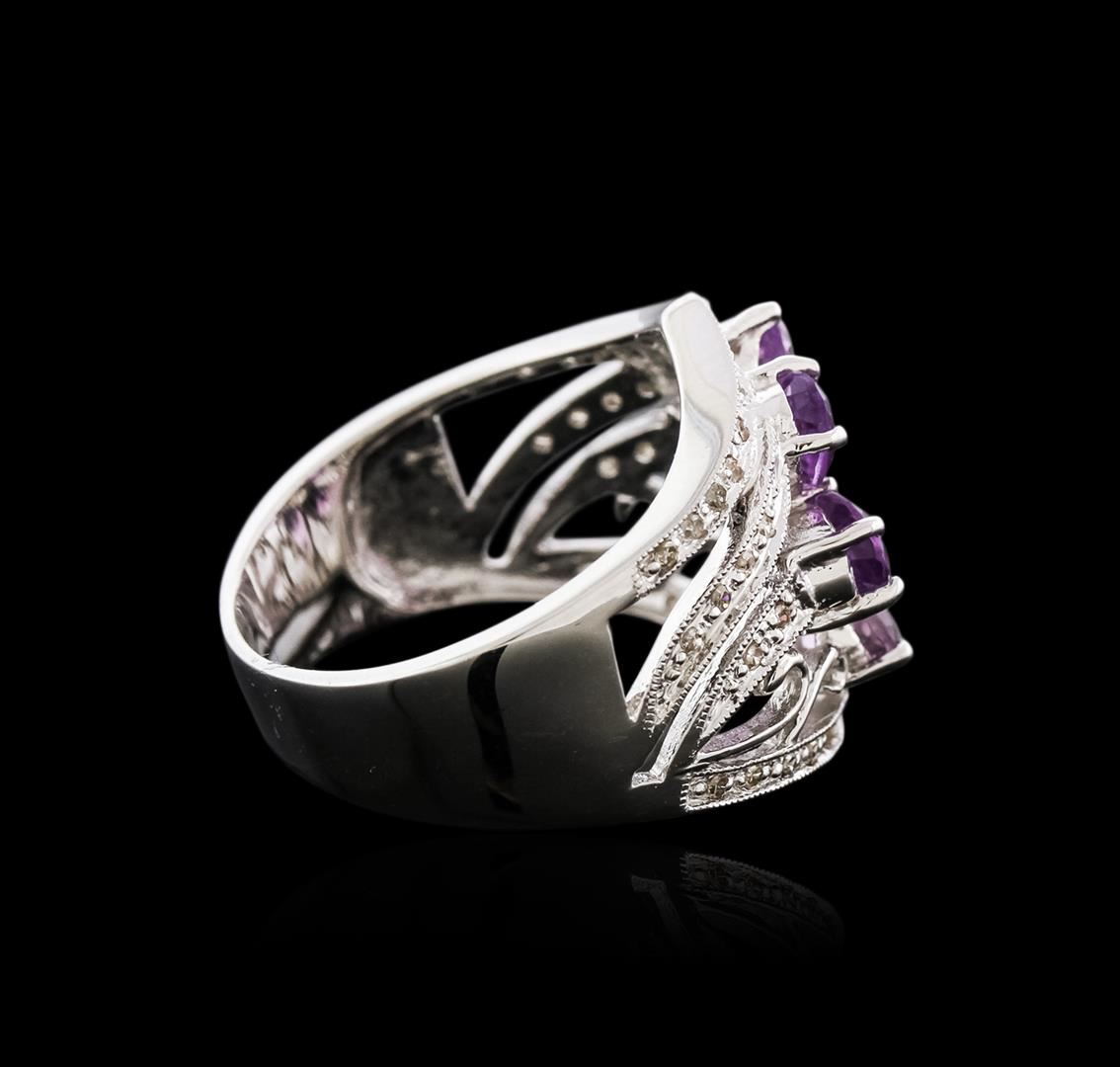 One ring featuring: 14KT white gold weighing 6.87 grams containing amethyst weighing a total of 1.25ct and diamonds weighing a total of 0.30ct.