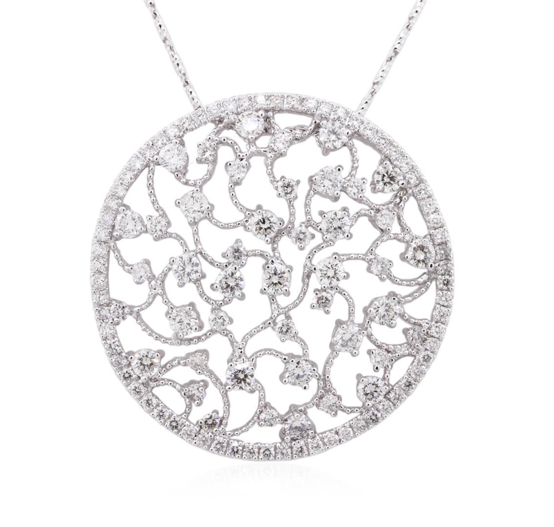One electronically tested 14KT white gold ladies combination cast & assembled diamond pendant & chain 18.0" long, cable link with a lobster claw clasp with a bright polish finish. Identified with markings of "585". Condition is new. Containing: Thirty-Three prong set round brilliant cut diamonds, measuring 2.50 - 1.50 x 1.20mm (depth est.) approximate total weight of 33 Stones = 0.96ct. Clarity: SI-1 to I-1. Color: I - J, Cut is Good. Sixty prong set round brilliant cut diamonds, measuring 1.10 - 1.10 x 0.66mm (depth est.) approximate total weight of 60 Stones = 0.29ct. Clarity: SI-2 to I-1. Color: I - J, Cut is Good. All diamonds are graded in the mounting, unless otherwise stated. Total Weight of Diamonds 1.25ct. Total Weight of Pendant & Chain 10.50 grams. GGL Appraised at $7,130.00.