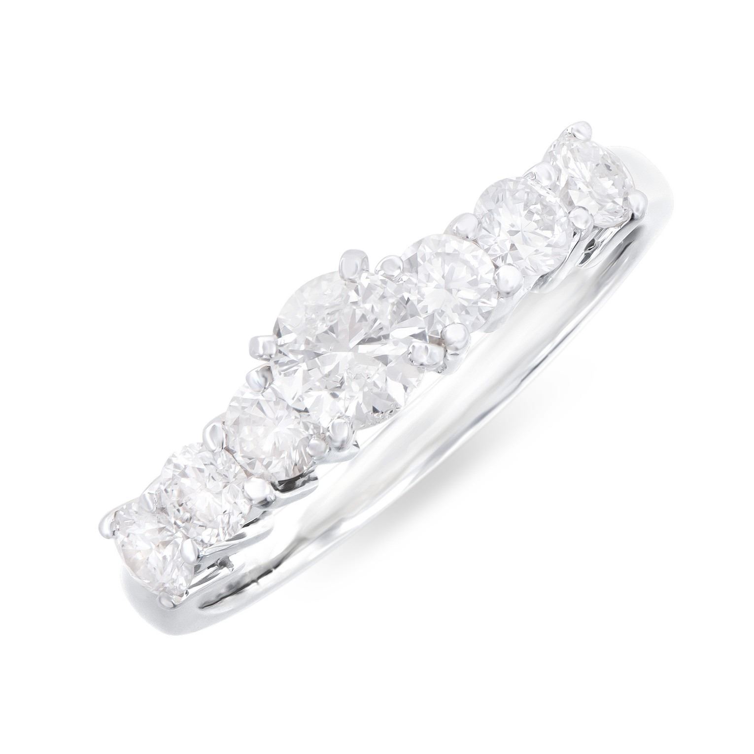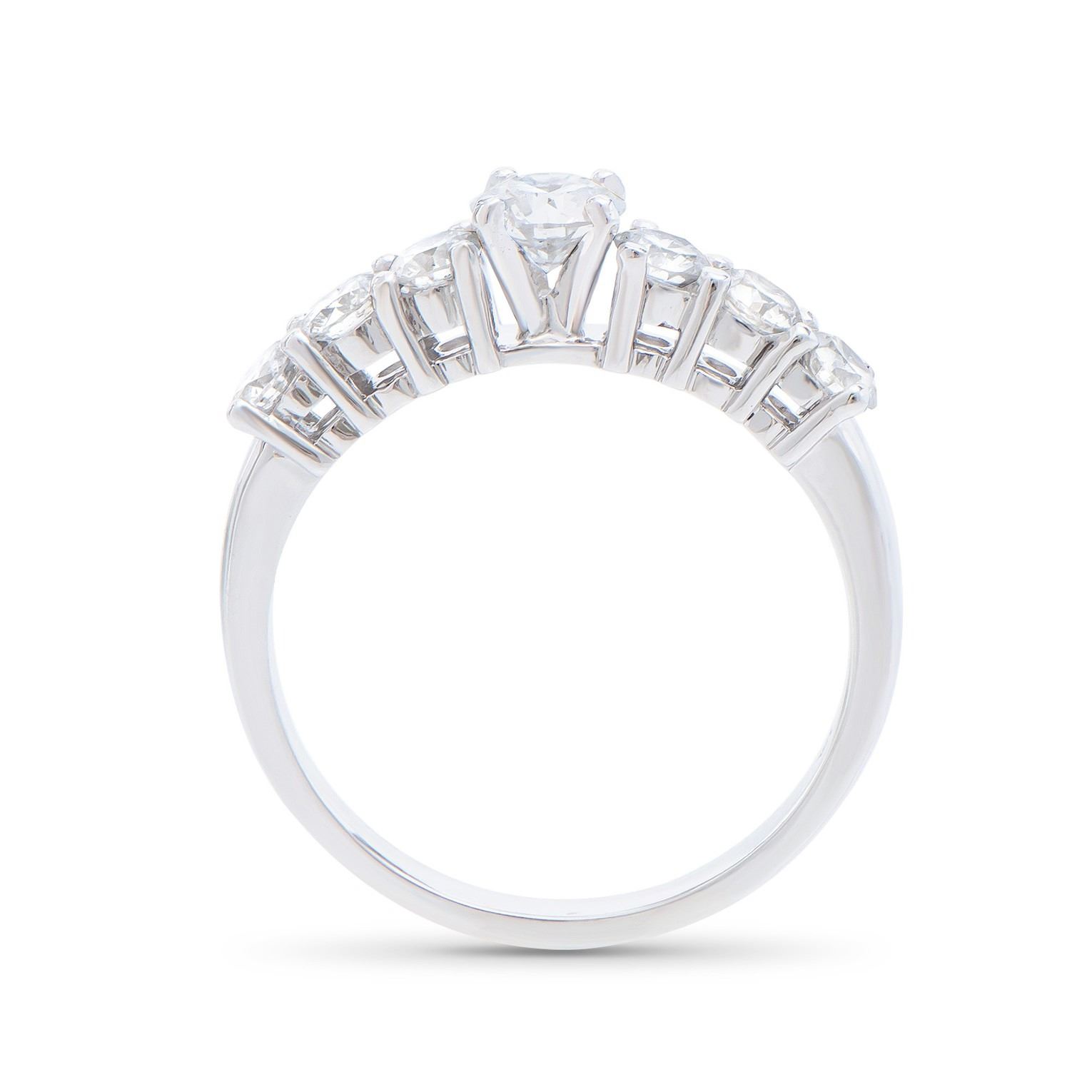 (1) round Diamond with a total weight of 0.45cts with a color of H-I and clarity of I1-I2. (6) round Diamonds with a total weight of 0.80cts with a color of H-I and clarity of I1-I2. Total weight of this ring is 3.0 grams. Ring size is 7.5.