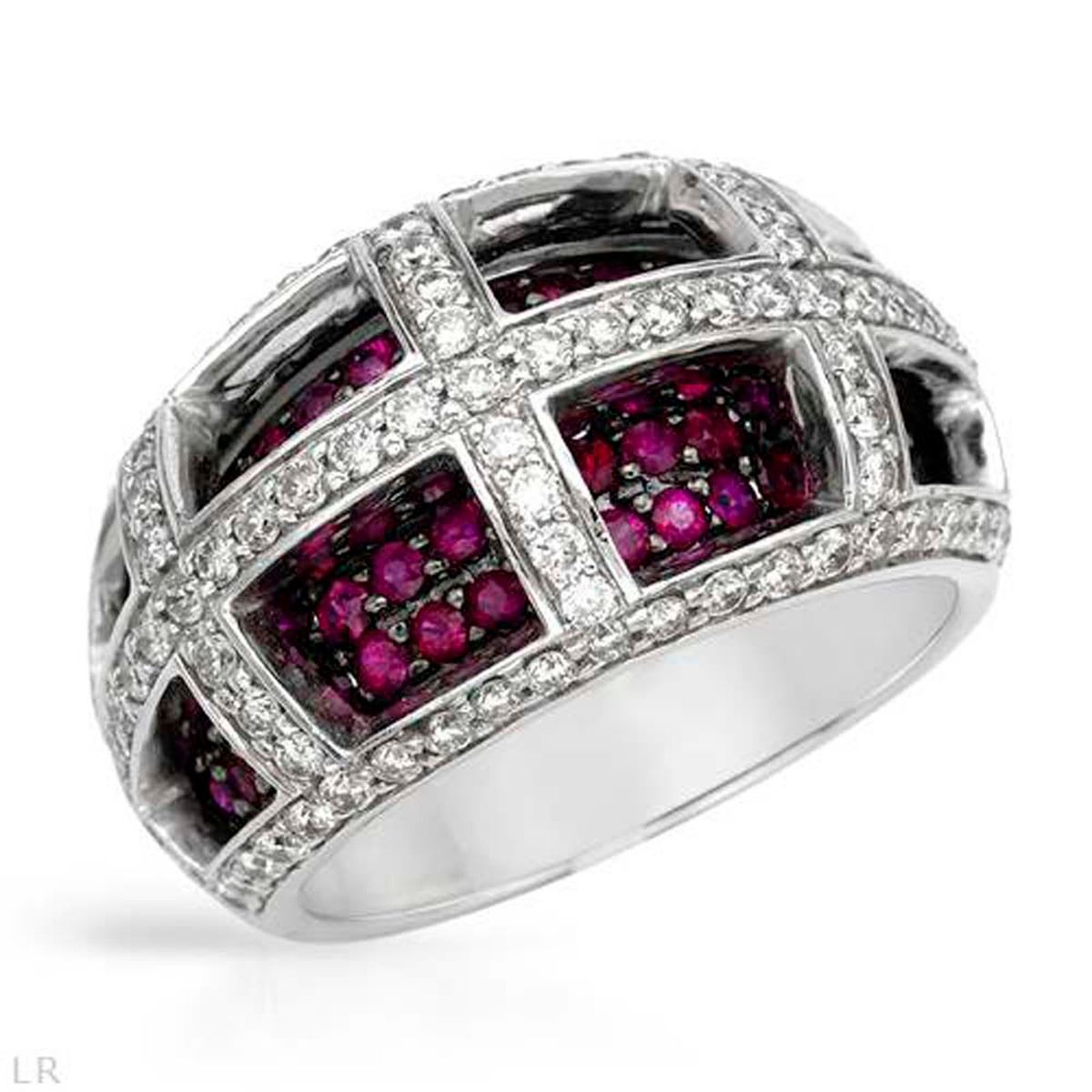 One 14KT White Gold 1.25ctw Ruby and Diamond Ring. (71) Rubies with a total weight of 1.25cts. (95) Diamonds with a total weight of 0.97cts. The total weight of this ring is 10.32 grams.