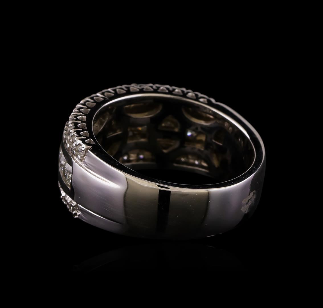 One electronically tested 14KT white gold ladies combination cast & assembled diamond ring with a bright polish finish. Identified with markings of "14K". Condition is new. Containing: Nine channel set round brilliant cut diamonds, measuring 3.00 - 3.00 x 1.80mm (depth est.) approximate total weight of 9 Stones = 0.89ct. Clarity: I-1 to I-2. Color: H - I, Cut is Good. Thirty prong set round brilliant cut diamonds, measuring 1.50 - 1.50 x 0.90mm (depth est.) approximate total weight of 30 Stones = 0.37ct. Clarity: SI-2 to I-1. Color: I - J, Cut is Good. All diamonds are graded in the mounting, unless otherwise stated. Total Weight of Diamonds 1.26ct. Total Weight of Ring 9.10 grams. GGL Appraised at $4,955.00.