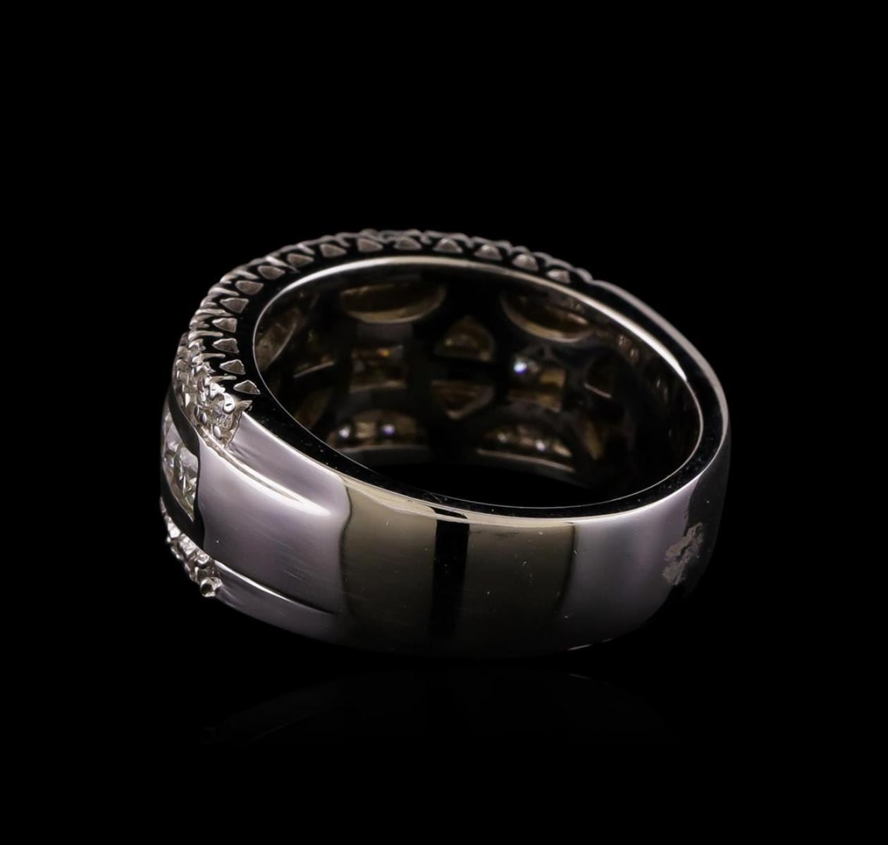 One electronically tested 14KT white gold ladies combination cast & assembled diamond ring with a bright polish finish. Identified with markings of "14K". Condition is new. Containing: Nine channel set round brilliant cut diamonds, measuring 3.00 - 3.00 x 1.80mm (depth est.) approximate total weight of 9 Stones = 0.89ct. Clarity: I-1 to I-2. Color: H - I, Cut is Good. Thirty prong set round brilliant cut diamonds, measuring 1.50 - 1.50 x 0.90mm (depth est.) approximate total weight of 30 Stones = 0.37ct. Clarity: SI-2 to I-1. Color: I - J, Cut is Good. All diamonds are graded in the mounting, unless otherwise stated. Total Weight of Diamonds 1.26ct. Total Weight of Ring 9.10 grams. GGL Appraised.