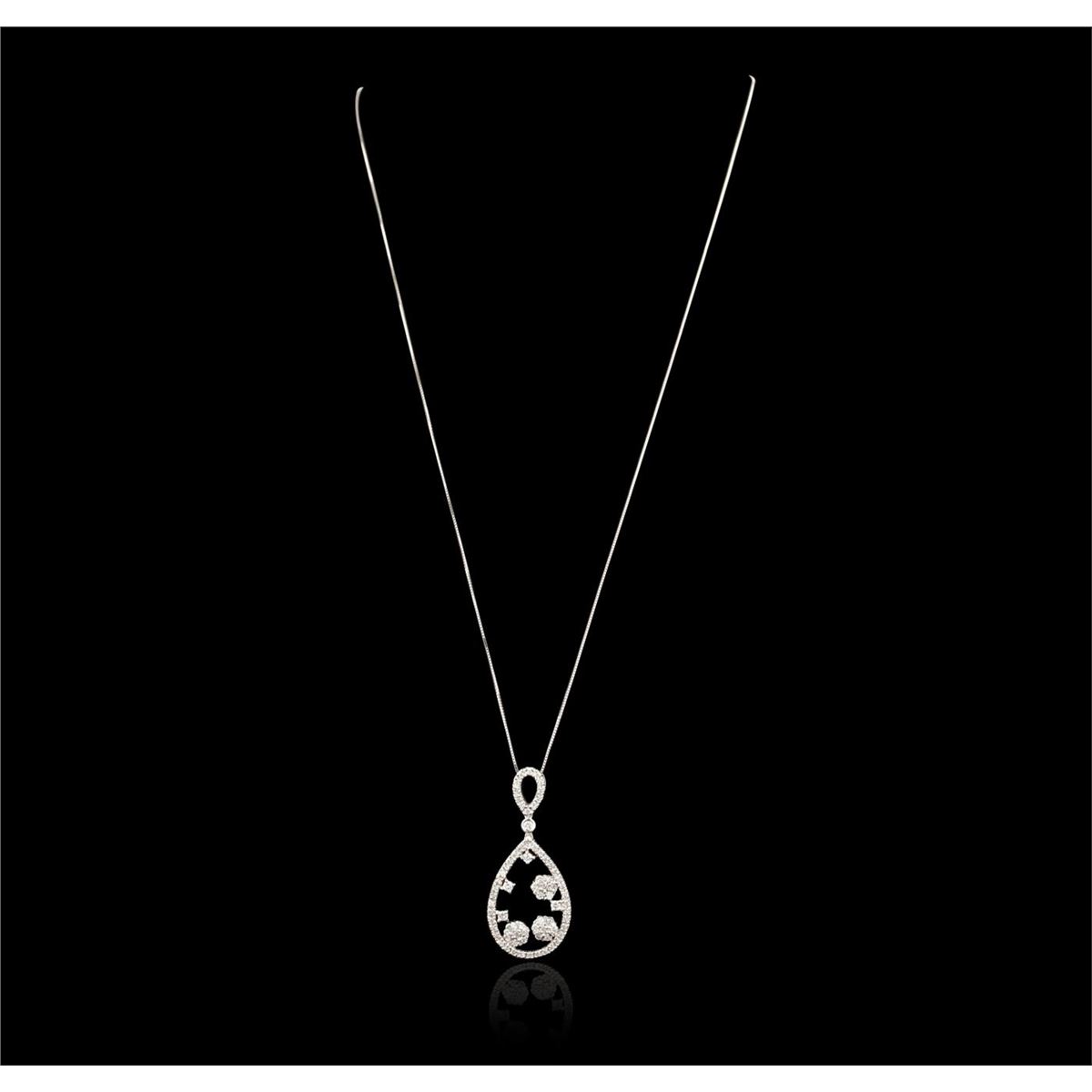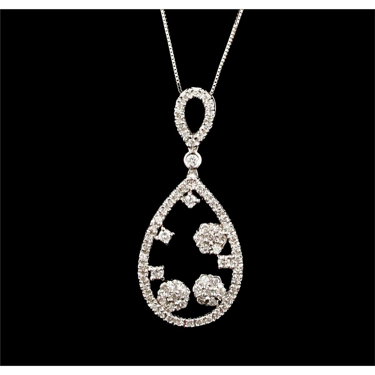 One pendant with chain featuring: 6.90 grams of 14KT white gold and 1.26ctw of diamonds.