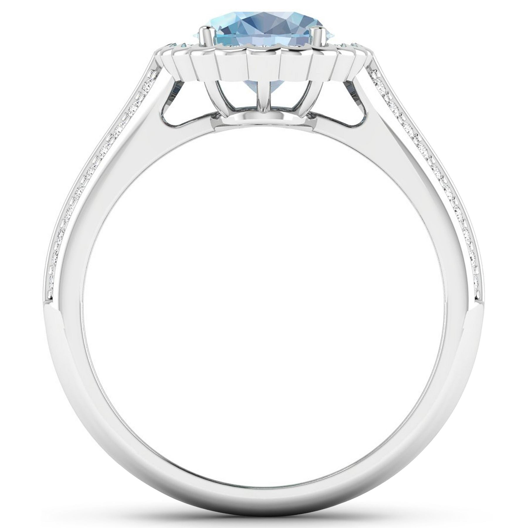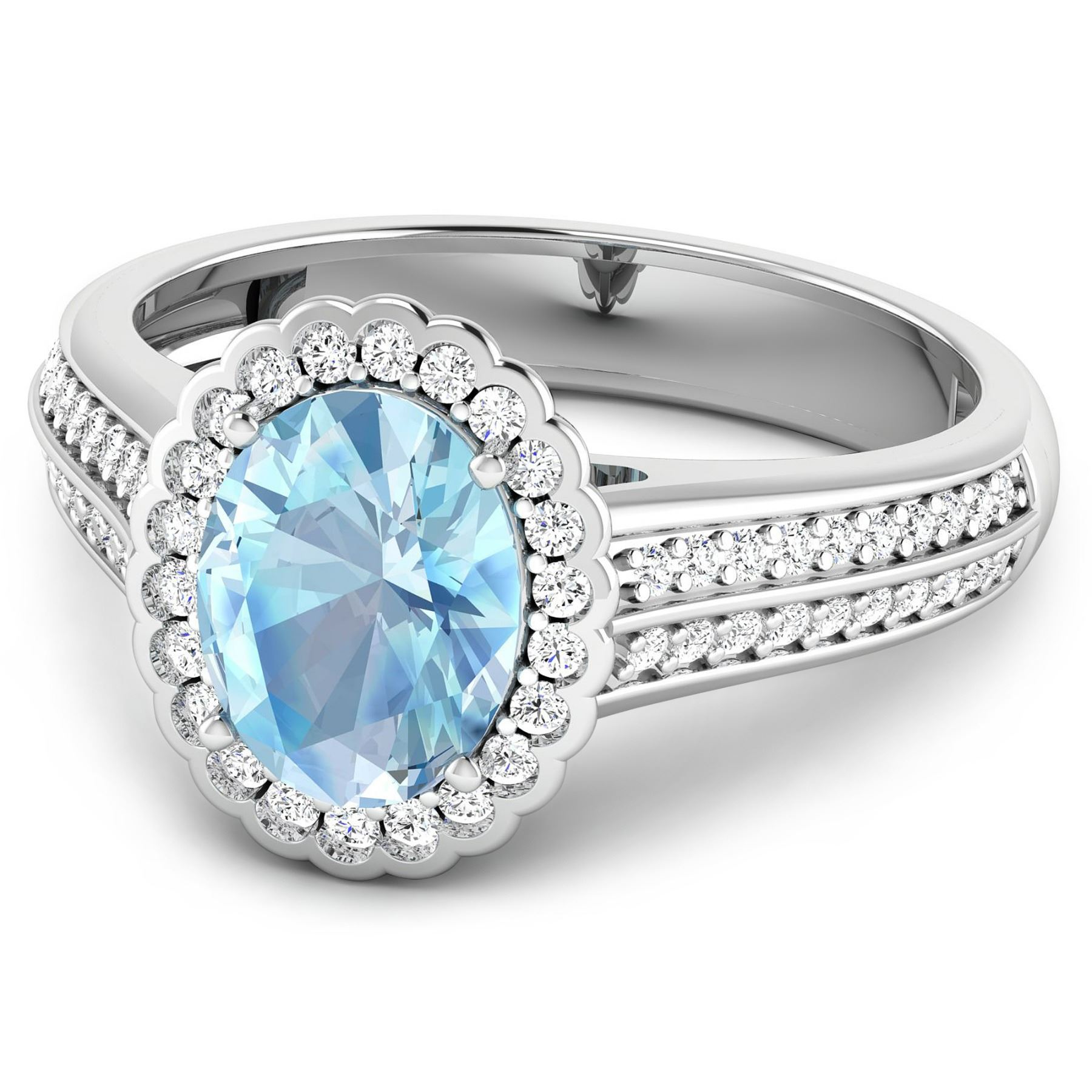 Aquamarine (AA+) Oval 9x7mm - 1Pc + White Diamond F/C Round 1.20mm - 30Pcs + White Diamond F/C Round 1.10mm - 20Pcs + White Diamond F/C Round 1.00mm - 12Pcs (I1-I2/I color). Total weight of gemstone is 1.28cts. Total weight of Diamonds is 0.42cts. Total weight of this ring is 3.55 grams. Ring size 7.
