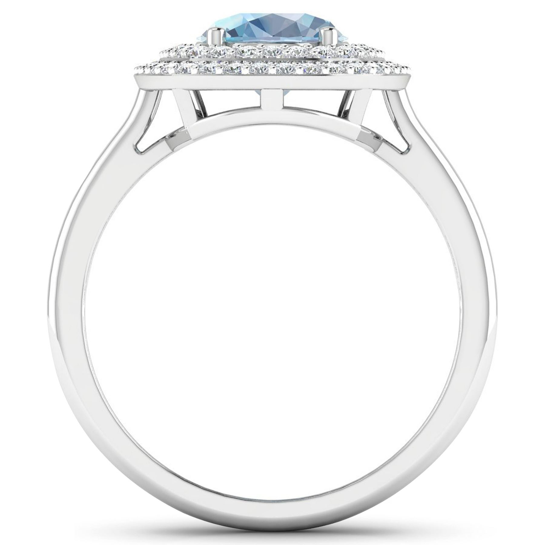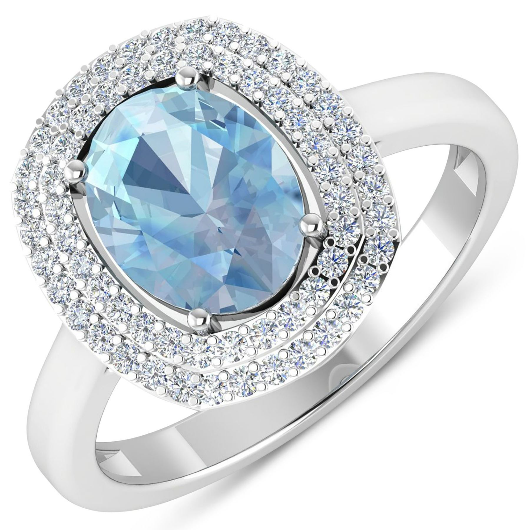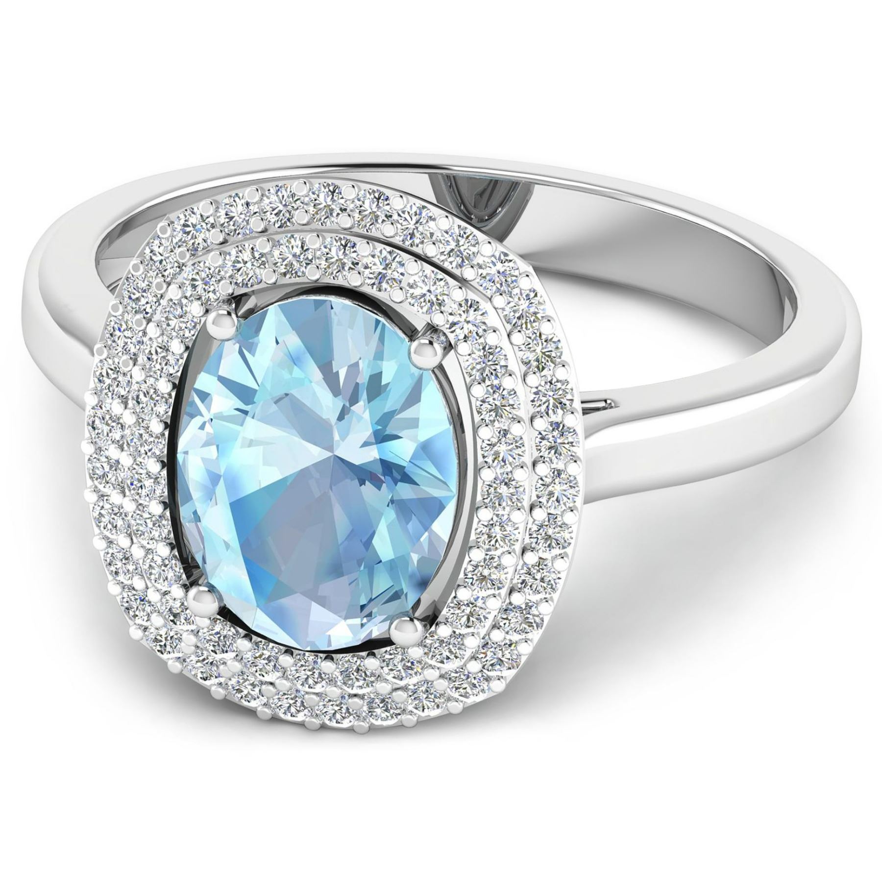 1 Aquamarine stone with a total weight of 1.28cts. Aquamarine (AA+) Oval 9x7mm - 1Pc + White Diamond F/C Round 1.00mm - 62Pcs (I1-I2/I color). 0.28cts of Diamonds. Total weight of this ring is 2.49 grams. Ring size 7.