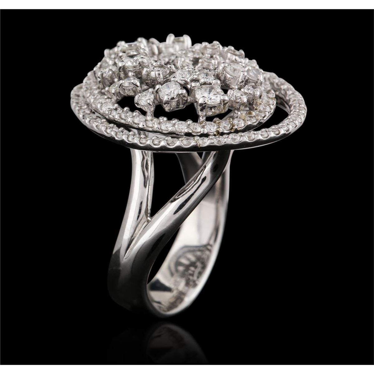One electronically tested 14KT white gold ladies cast diamond ring with a bright polish finish. Identified with markings of "585". Condition is new. Containing: One Hundred Thirty prong set round brilliant cut diamonds, measuring 2.50 - 1.30 x 1.14mm (depth est.) approximate total weight of 130 Stones = 1.30ct. Clarity: SI-1 to I-1. Color: H - I, Cut is Good. All diamonds are graded in the mounting, unless otherwise stated. Total Weight of Diamonds 1.30ct. Total Weight of Ring 9.10 grams. GGL Appraised at $5,675.00.