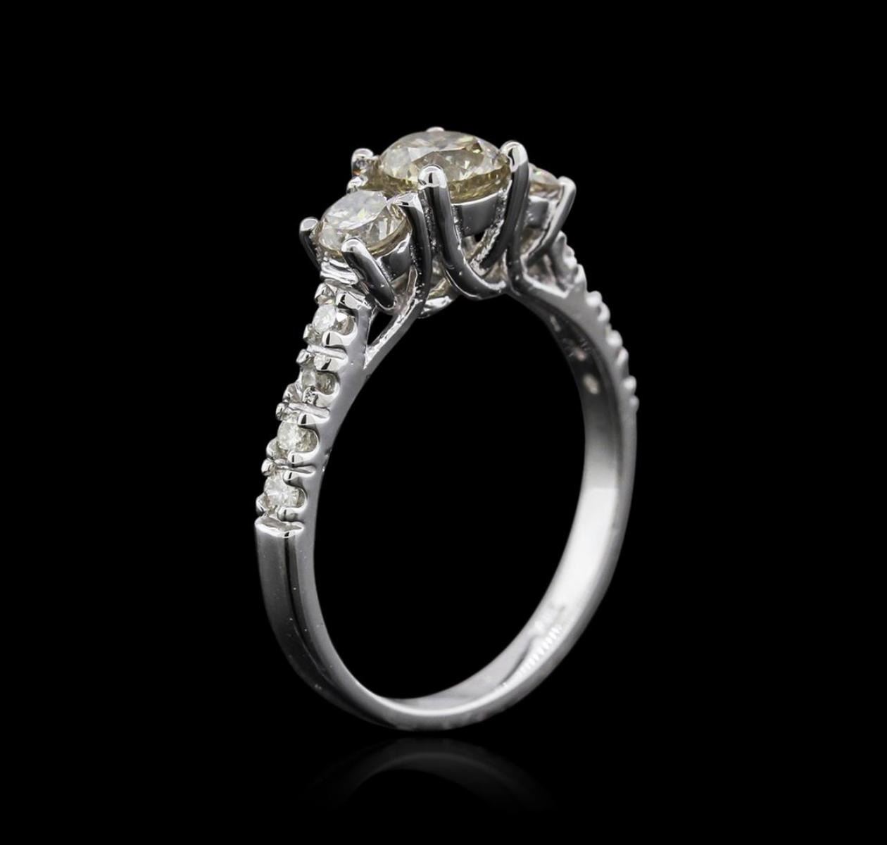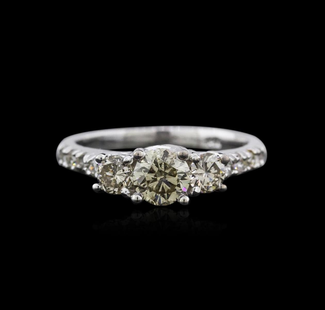 One ring featuring: 14KT white gold weighing 3.30 grams containing three primary diamonds with a total weight of 1.12ct and eight side diamonds with a total weight of 0.18ct.