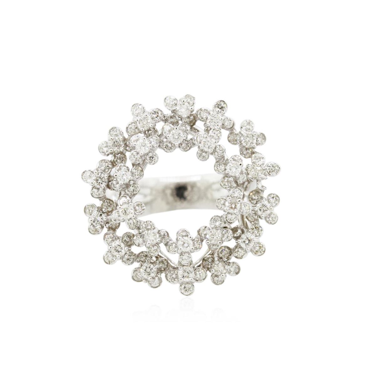 One electronically tested 14KT white gold ladies cast diamond ring with a bright polish finish. Identified with markings of "14K". Condition is new. Containing: One Hundred Nineteen prong set round brilliant cut diamonds, measuring 1.60 - 1.30 x 0.87mm (depth est.) approximate total weight of 119 Stones = 1.32ct. Clarity: SI-2 to I-1. Color: H - I, Cut is Good. All diamonds are graded in the mounting, unless otherwise stated. Total Weight of Diamonds 1.32ct. Total Weight of Ring 8.60 grams. GGL Appraised at $4,415.00.