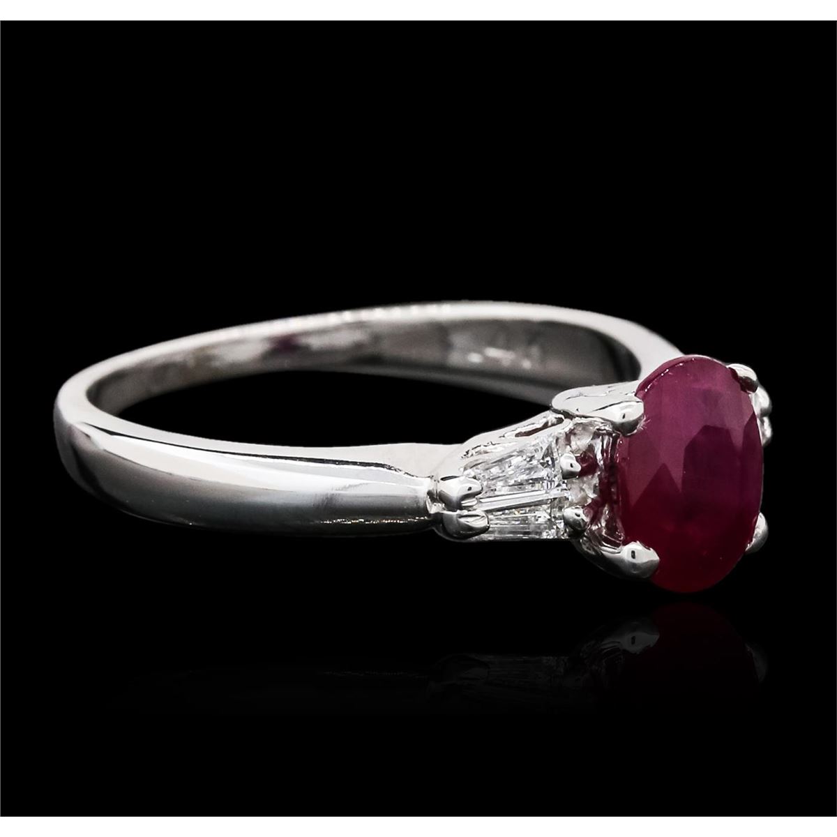 One ring featuring: 14KT white gold weighing 3.60 grams containing one ruby center stone with a total weight of 1.32ct and baguette cut diamonds with a total weight of 0.28cts.